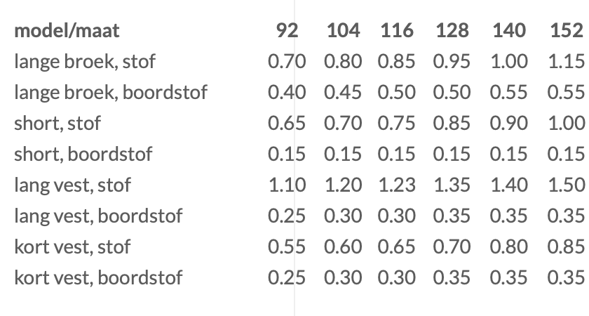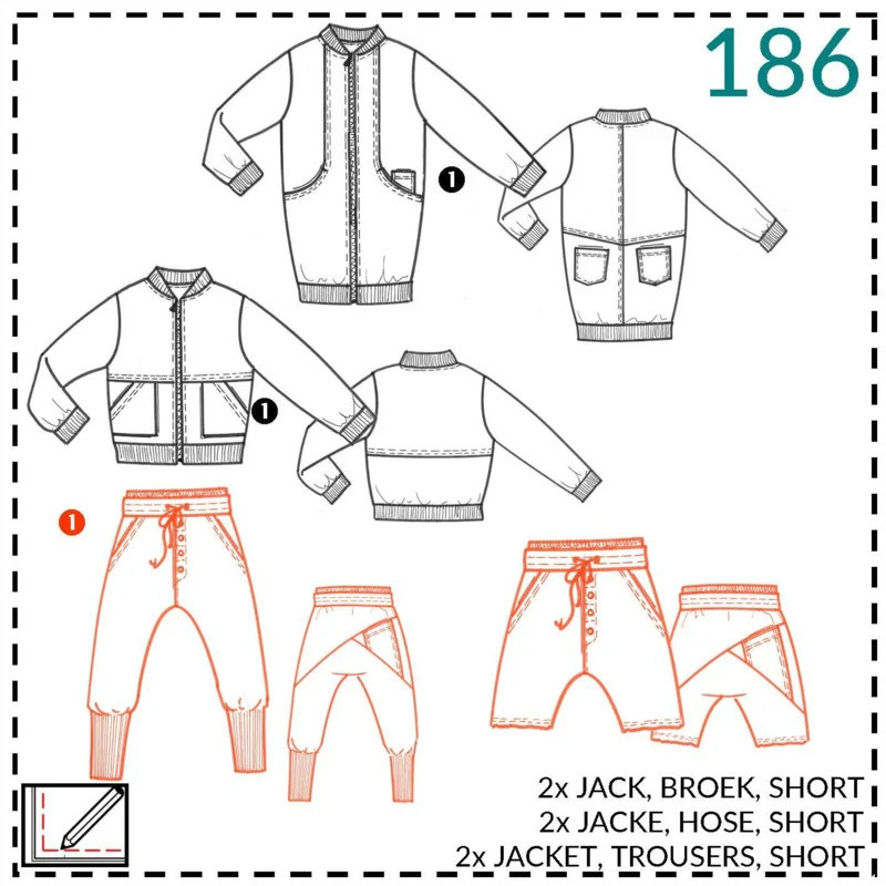 Broek of short met verlaagd kruis, steekzakken voor- en achterzak met brede boorden aan de pijpen. Daarnaast ook een lang en kort vest met boorden aan de mouwen, zoom en hals.... Lees meer