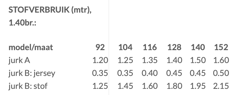 Te maken in maat 92 tm 152