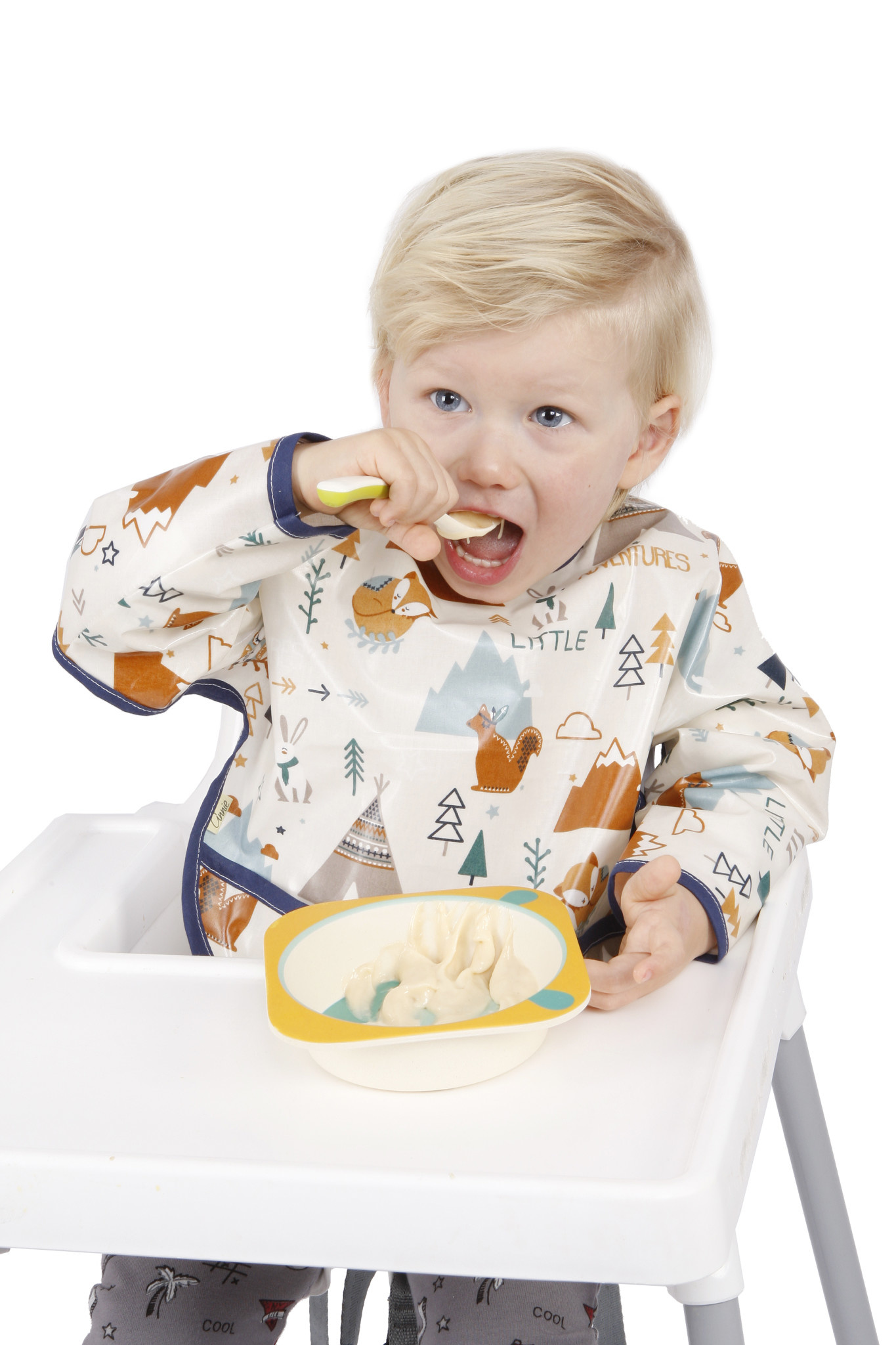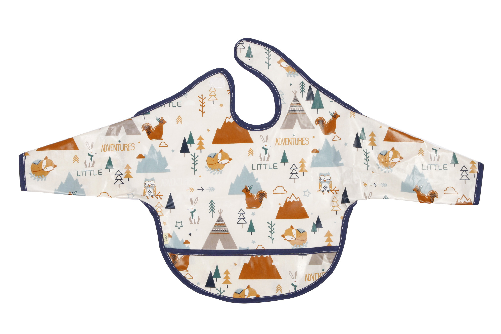 Naaipatroon afwasbare slab met mouw, inclusief duidelijke werkbeschrijving. Deze slab is gemaakt van geplastificeerd katoen. Erg praktisch in gebruik door de mouwen en het afwasbare materiaal, zodra baby’s zelf gaan eten.