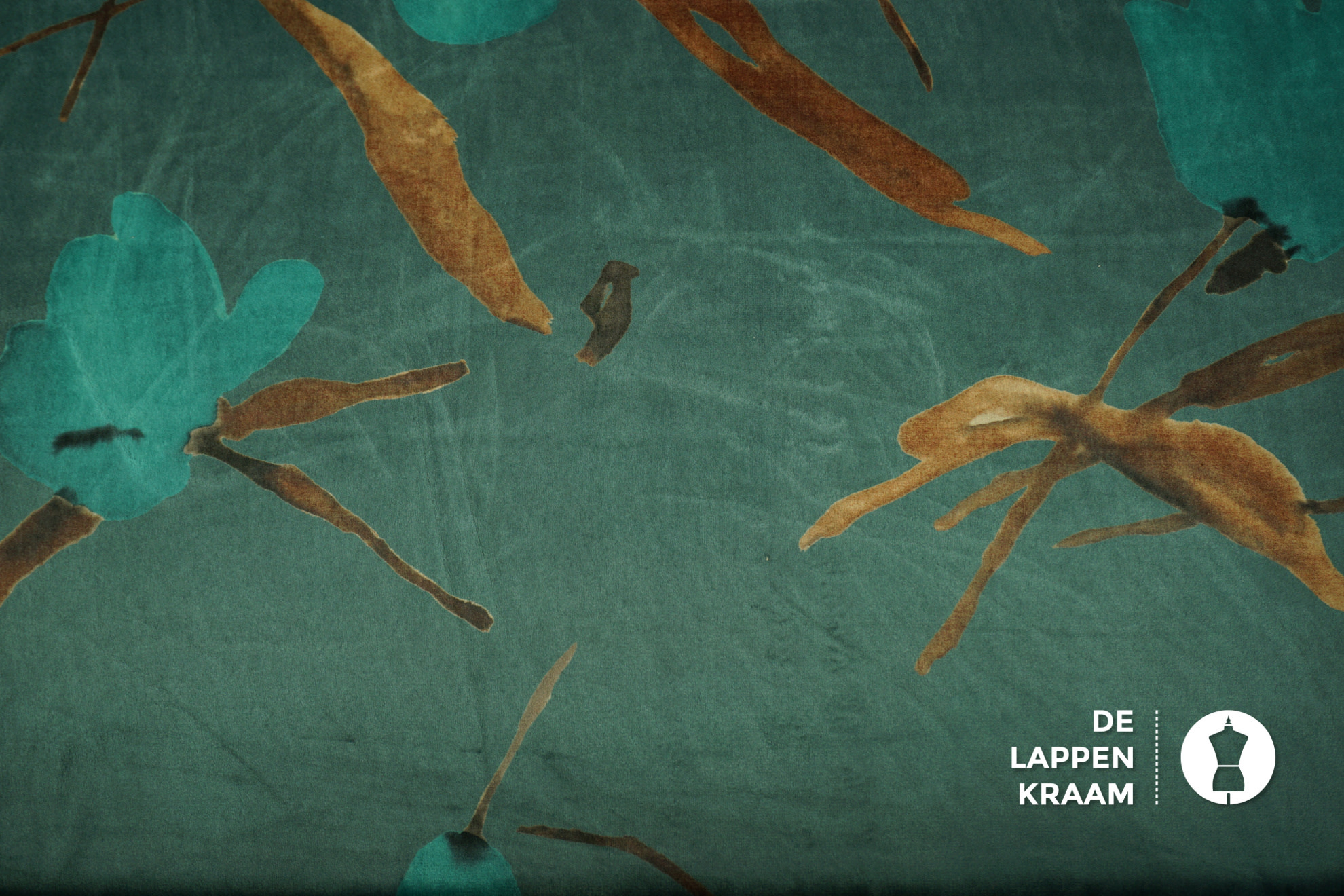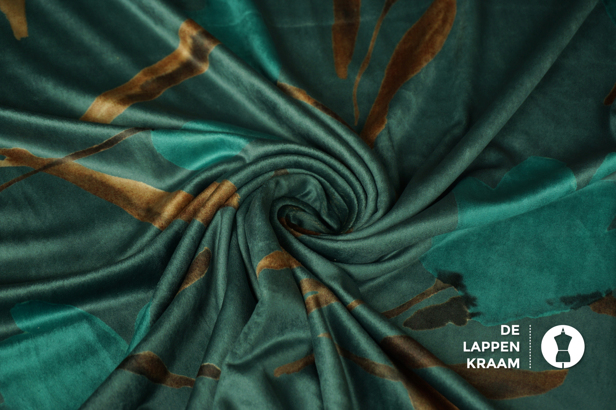 A la Ville Bedrukte Nicky velours donkergroen met fantasiemotief