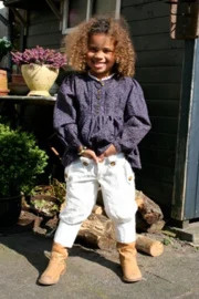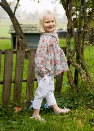 Blouse met wijde pofmouw, verhoogde taille en plooitjes. Daarnaast staat er op het patroon ook een patroon voor een broek met veel details, grote riemlussen, zakken en een veter. Te maken in maat 92 t/m 152... Lees meer