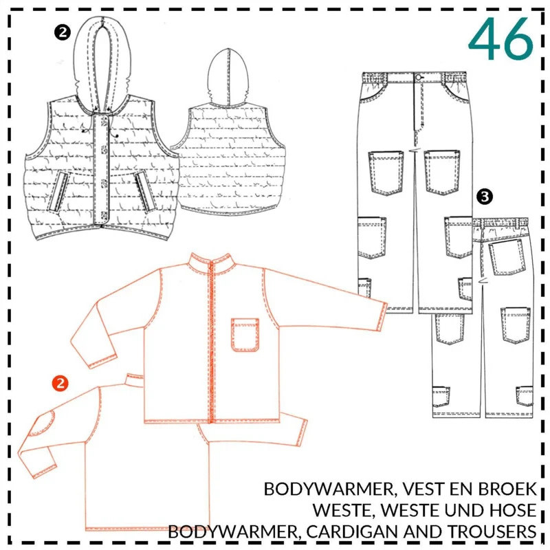 Abacadabra Naaipatroon bodywarmer, vest en broek