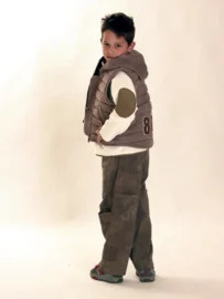 Vest met borstzakje, opstaande kraag, elleboogstukken en rits middenvoor. In maten 92 - 104 - 116 - 128 - 140 - 152 Lees meer