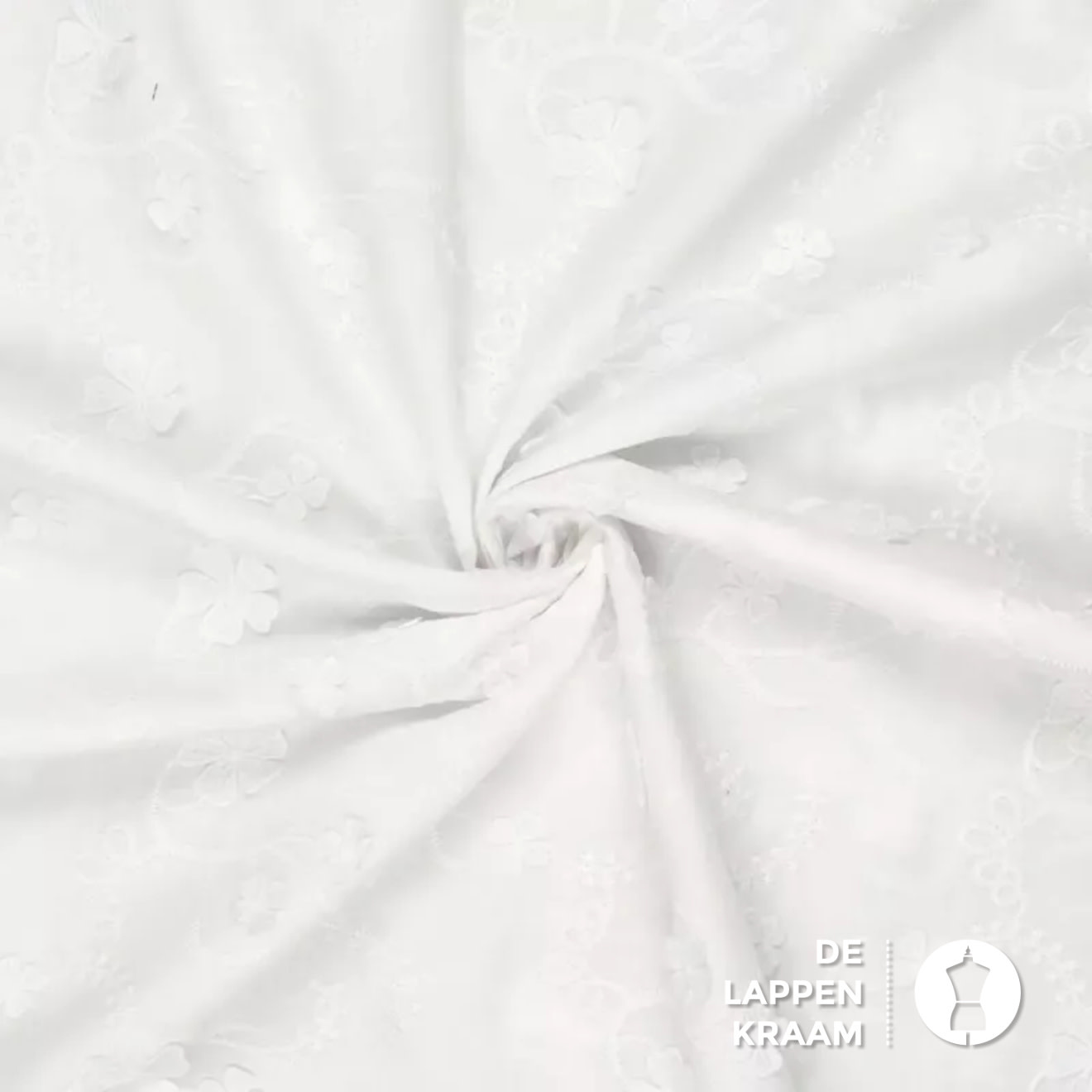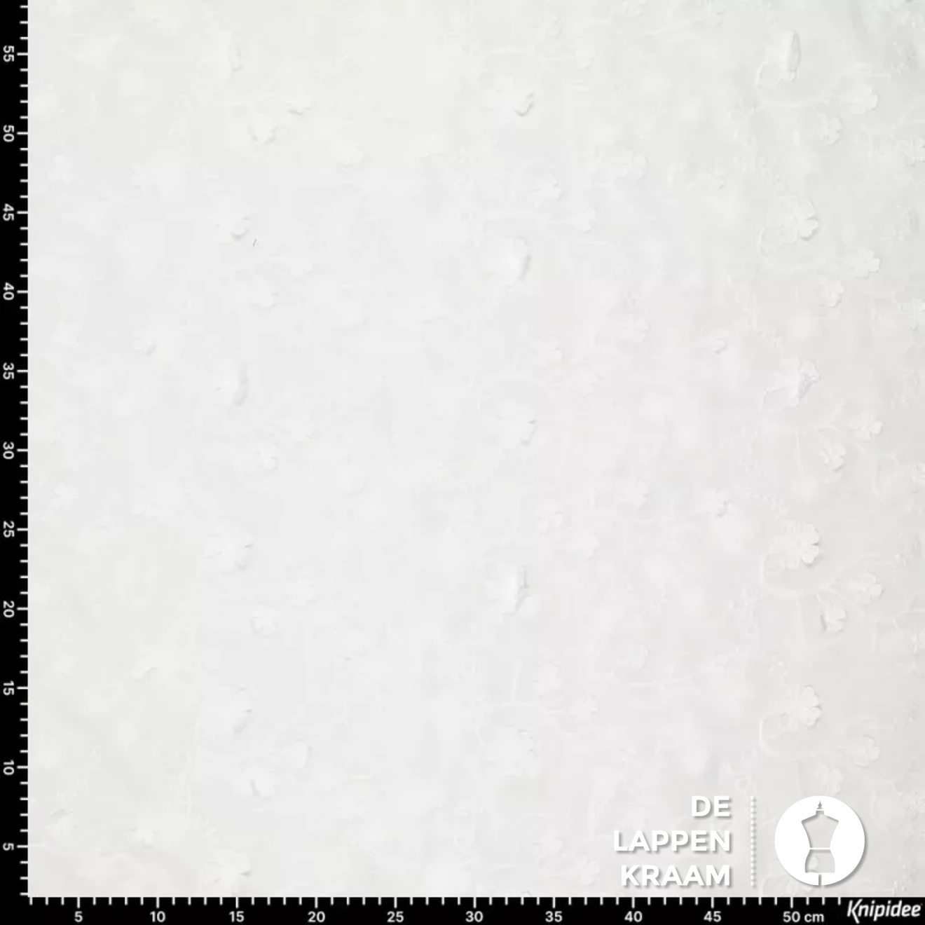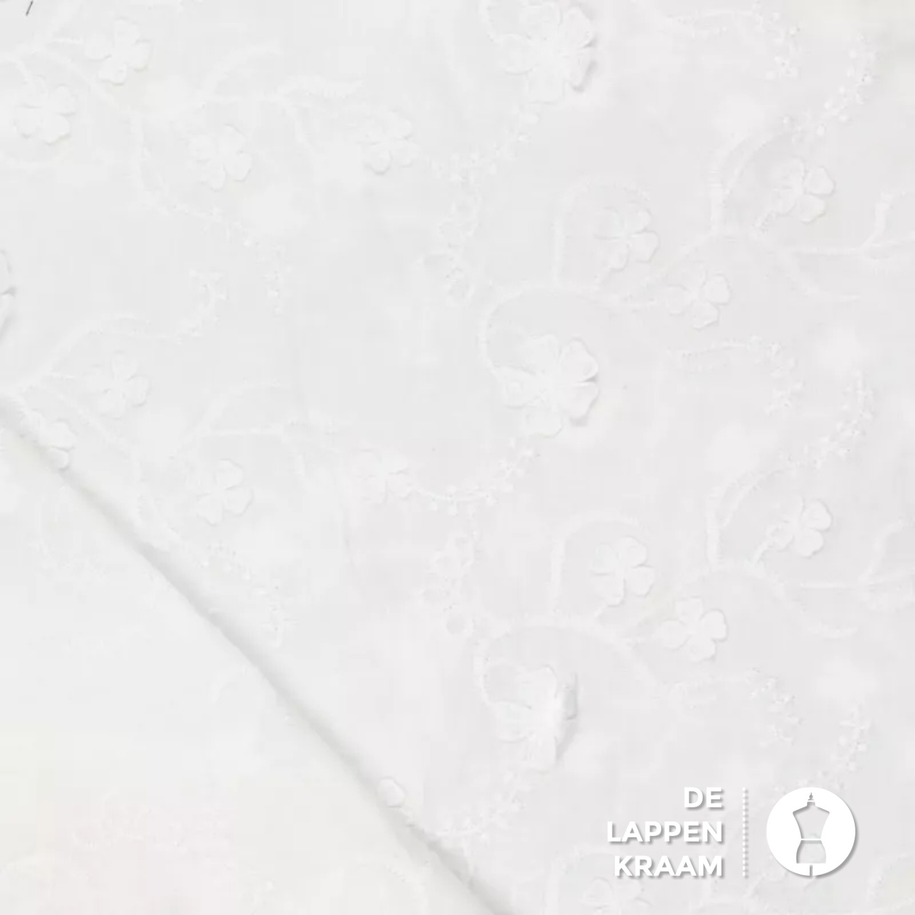 Broderie stof met opgestikte bloemetjes wit
