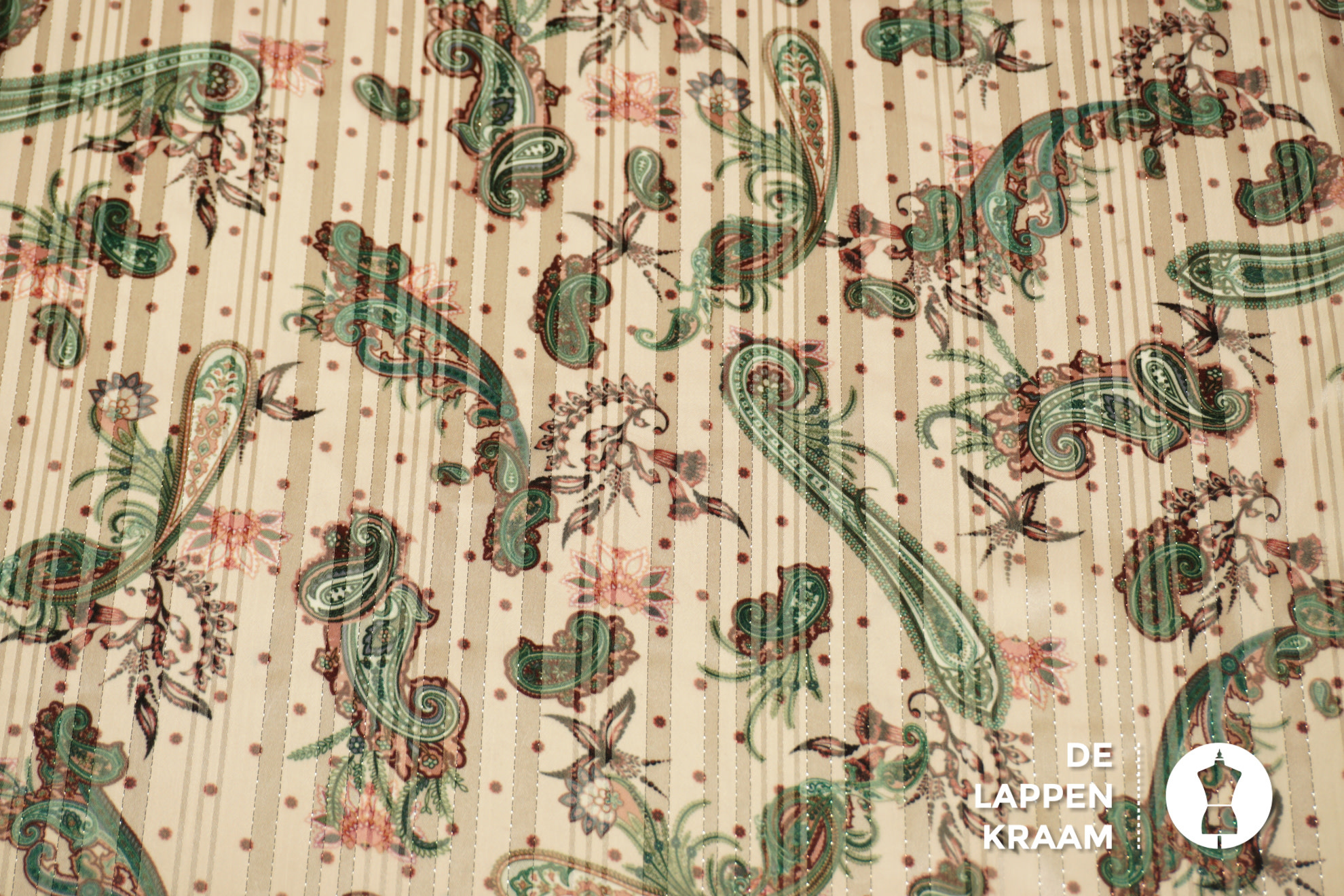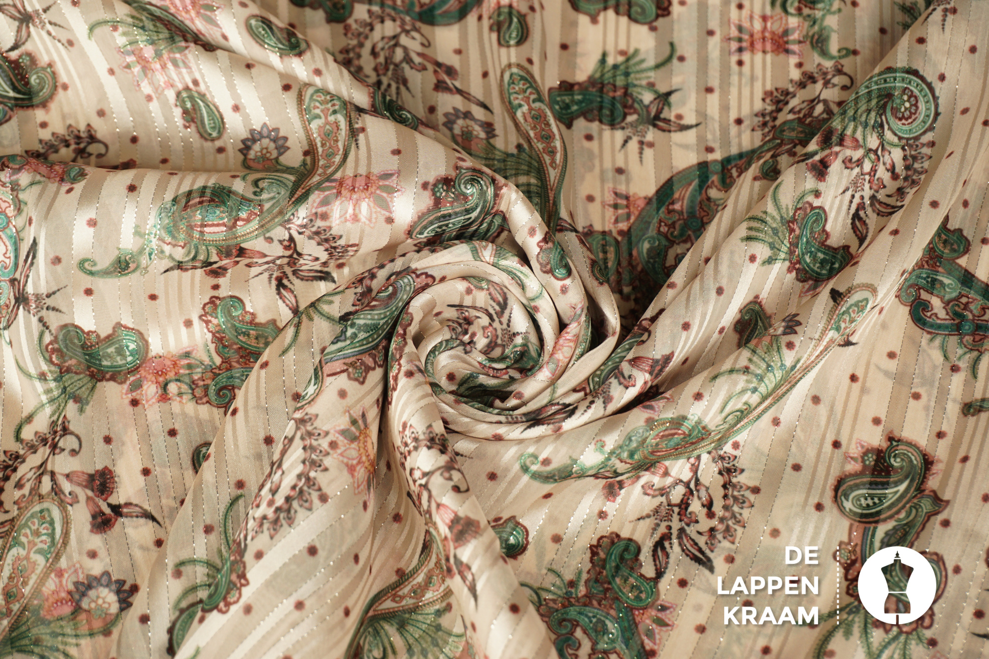 SALE Chiffon met lurex beige met groene paisley