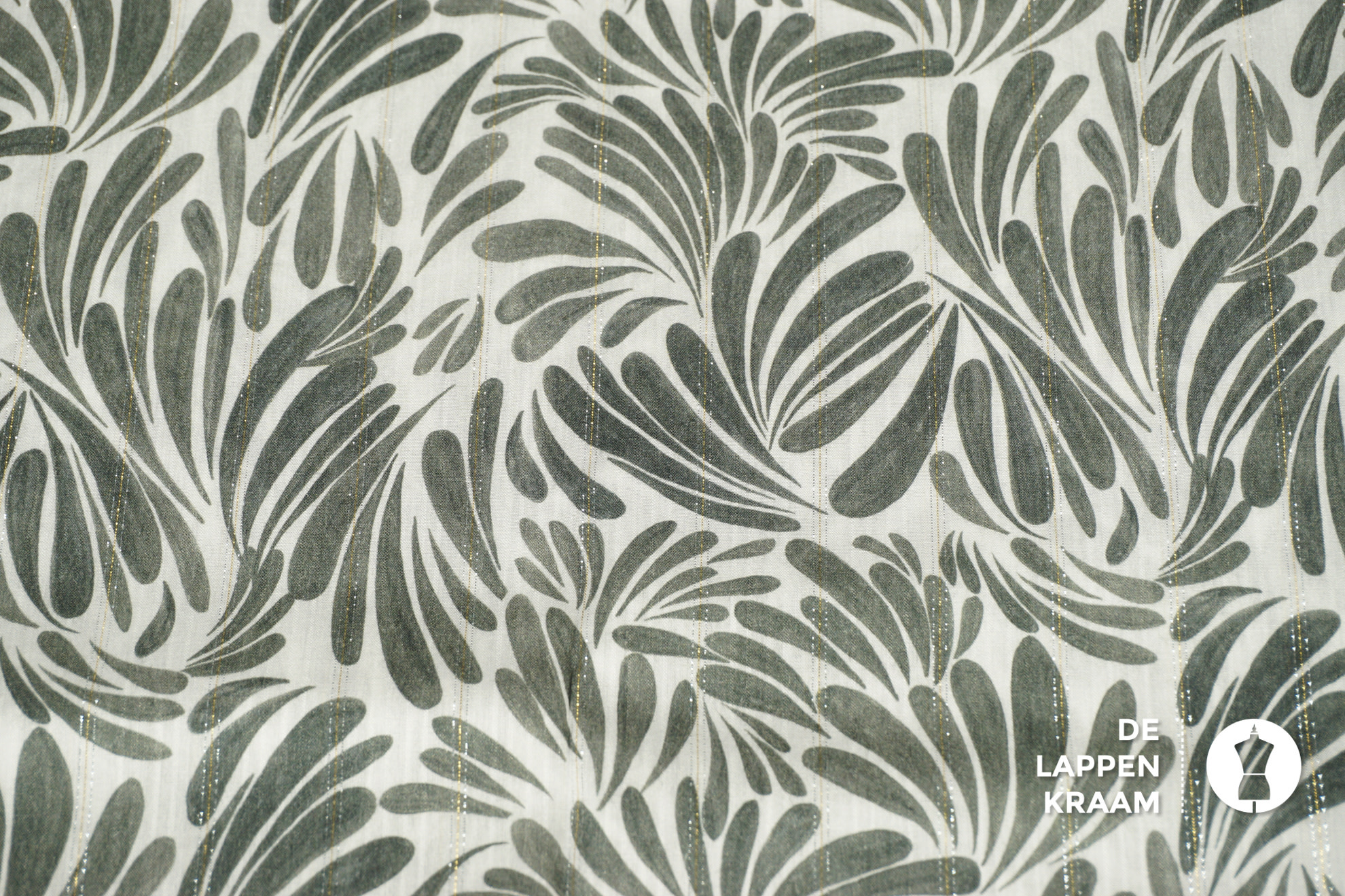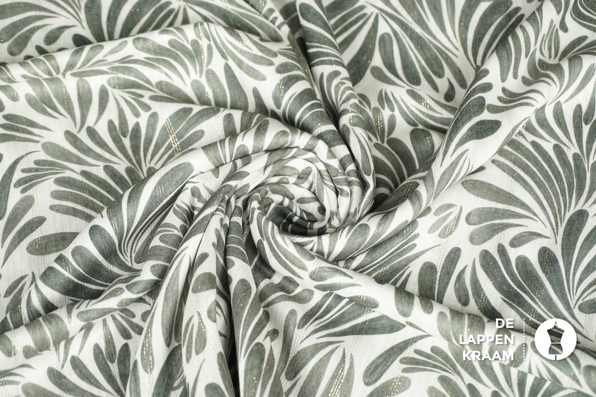 Coupon 101 Viscose wit met groene bladeren en lurex 170 x 140 cm