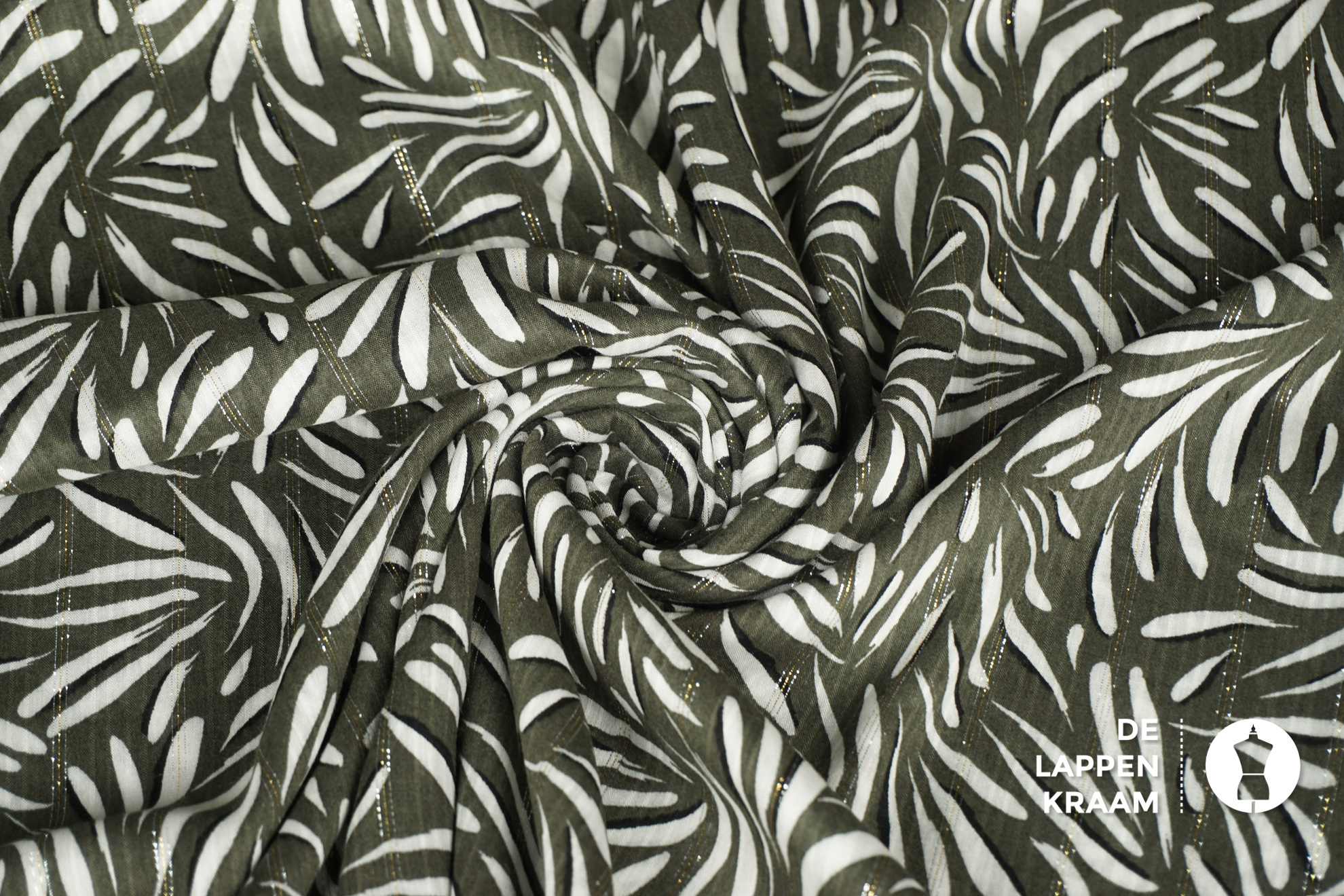 Coupon 114 Viscose legergroen met witte blaadjes en lurex 170 x 140 cm