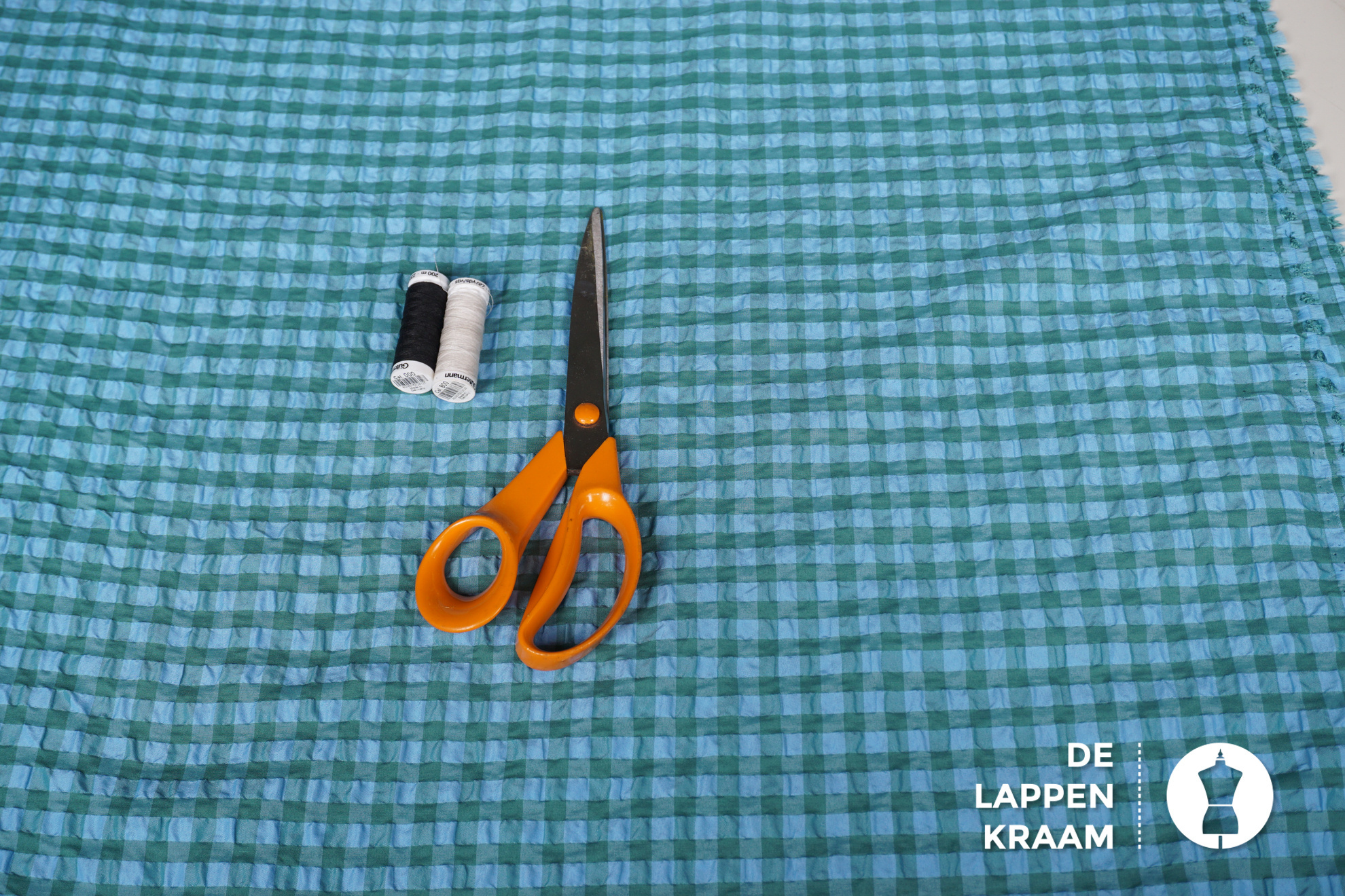 Coupon 205 Seersucker ruitje in blauw met groen 180 x 150 cm