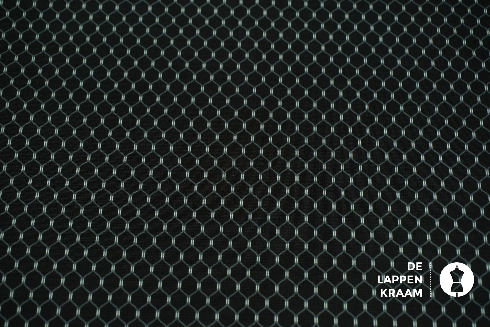 Coupon 224 Punta Milano zwart met grijs en blauw honingraatmotief 180 x 150 cm