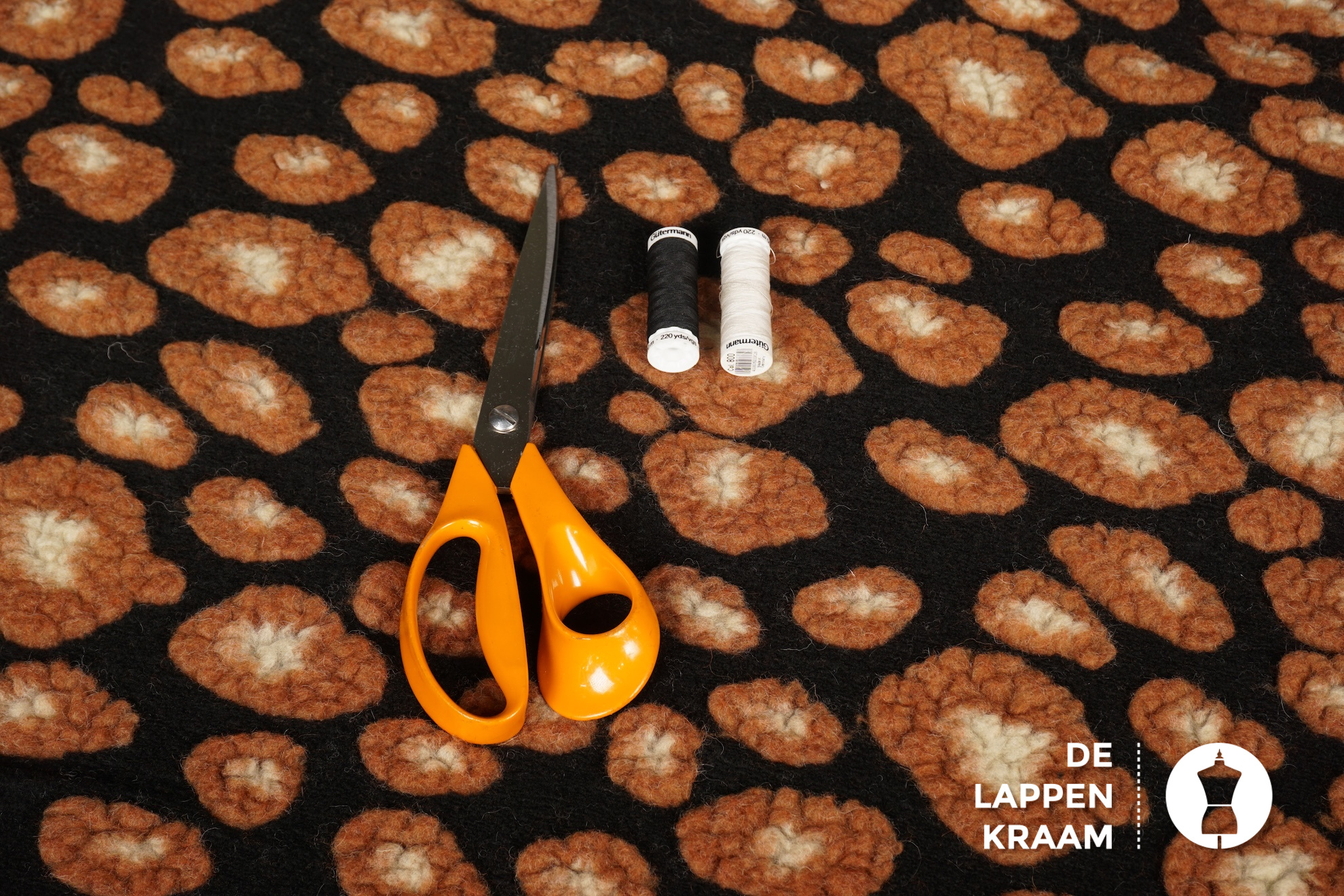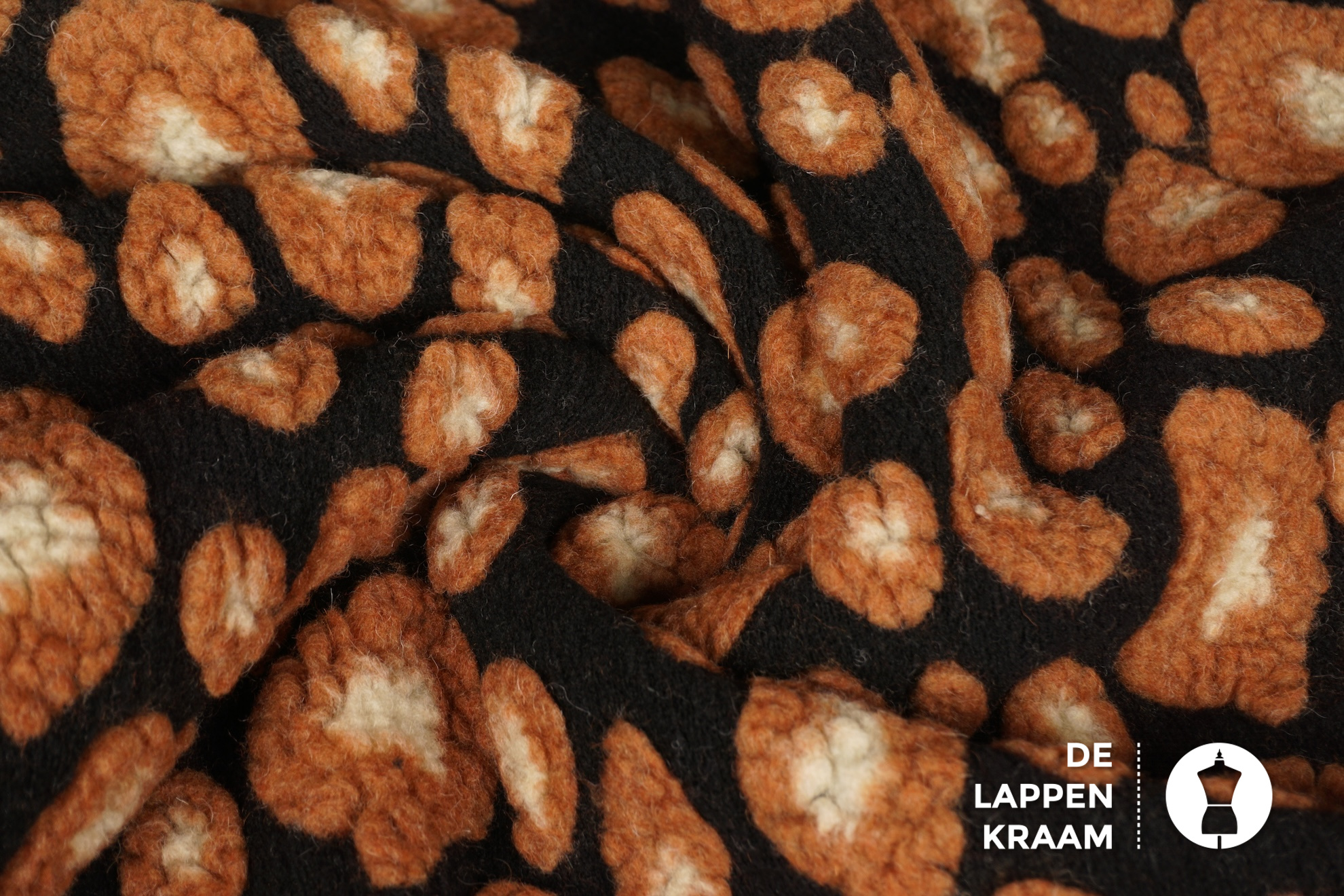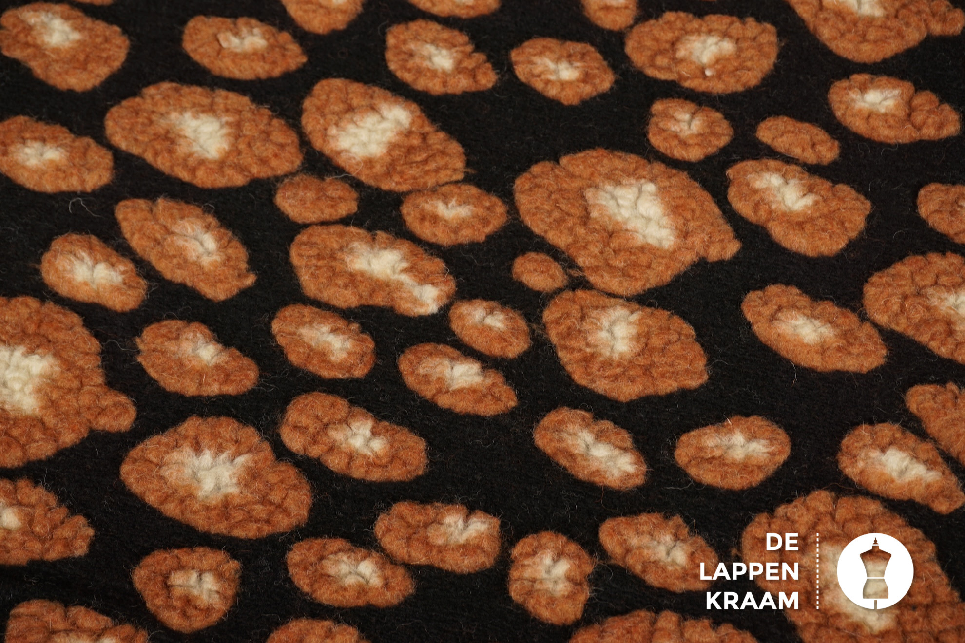 Coupon 237 Gekookte wol stof met 3d panterprint zwart 100 x 160 cm