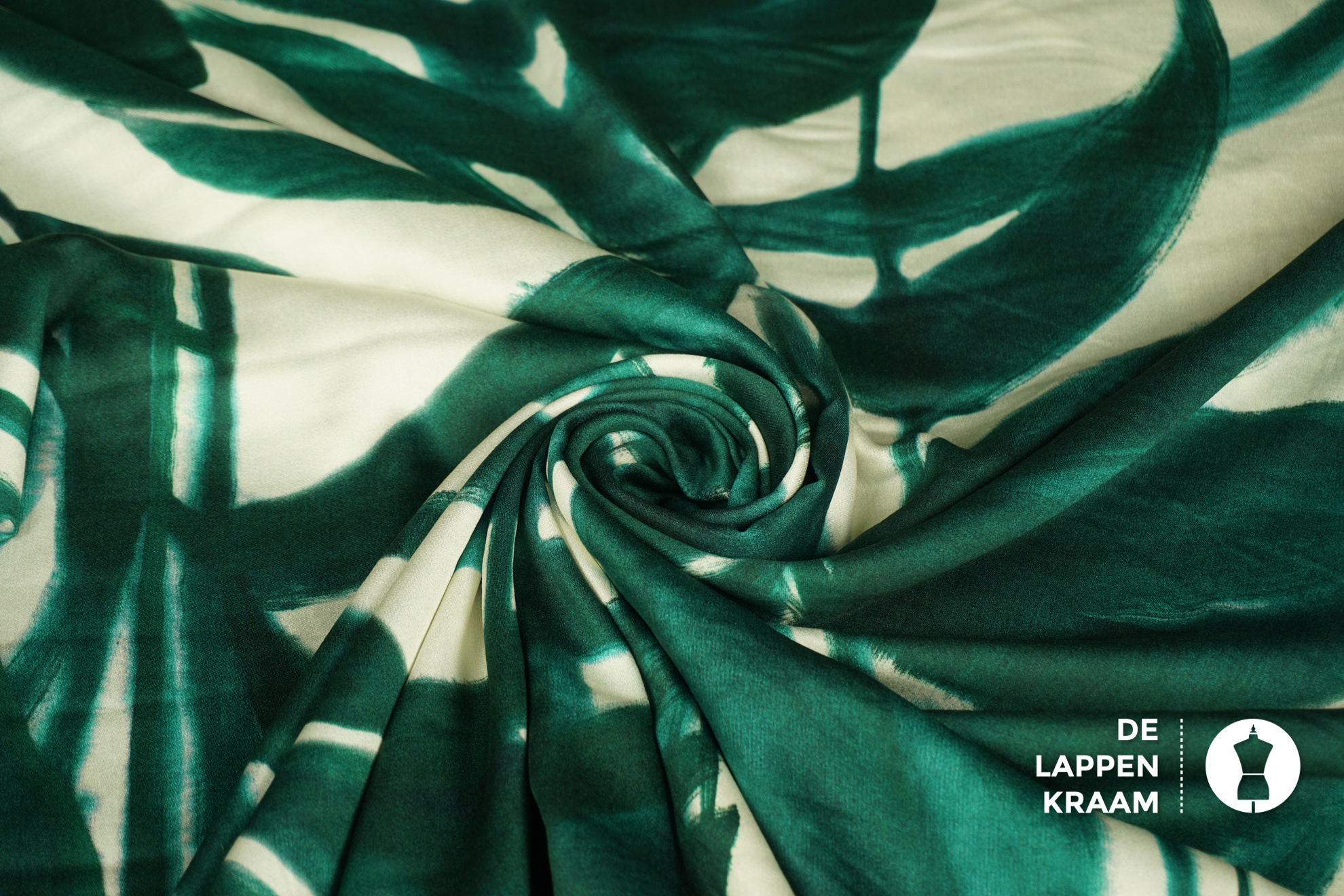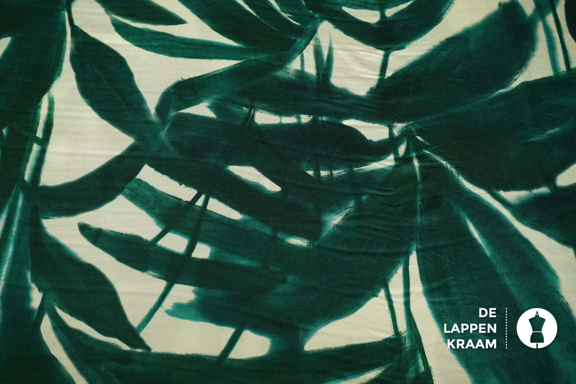 Coupon 30 Viscose roomwit met groene bladeren 170 x 140 cm
