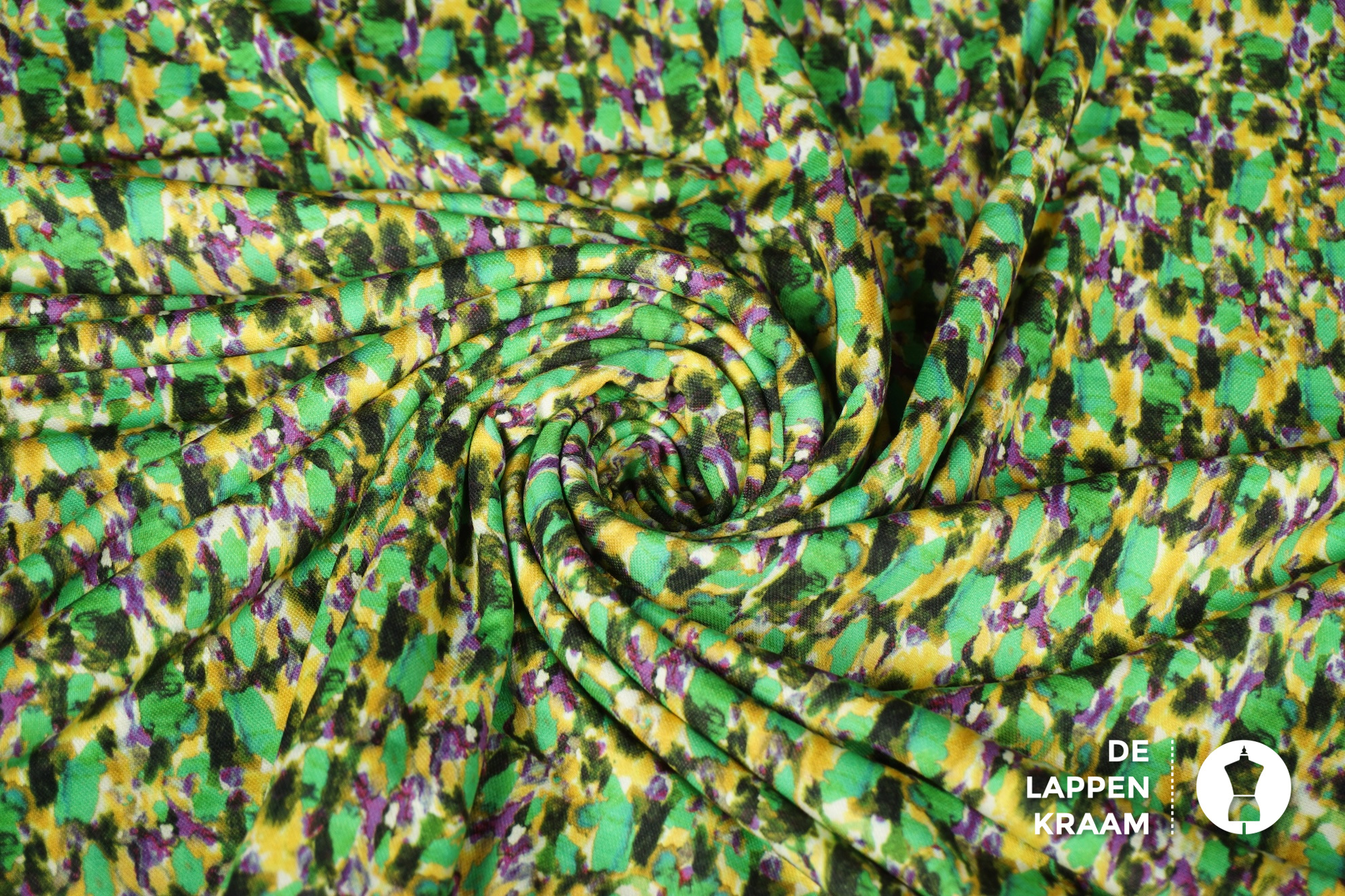 Coupon 32 Viscose stretch met groene verfvlekjes 170 x 150 cm