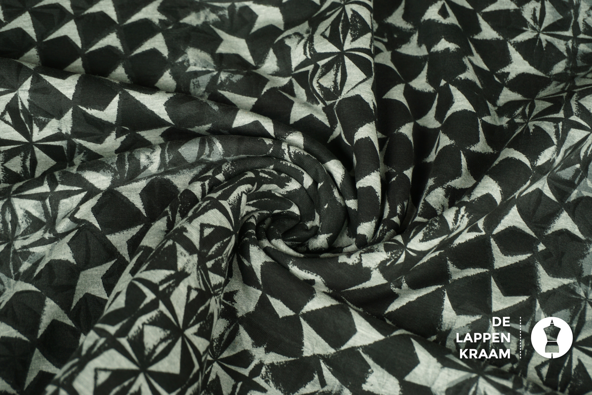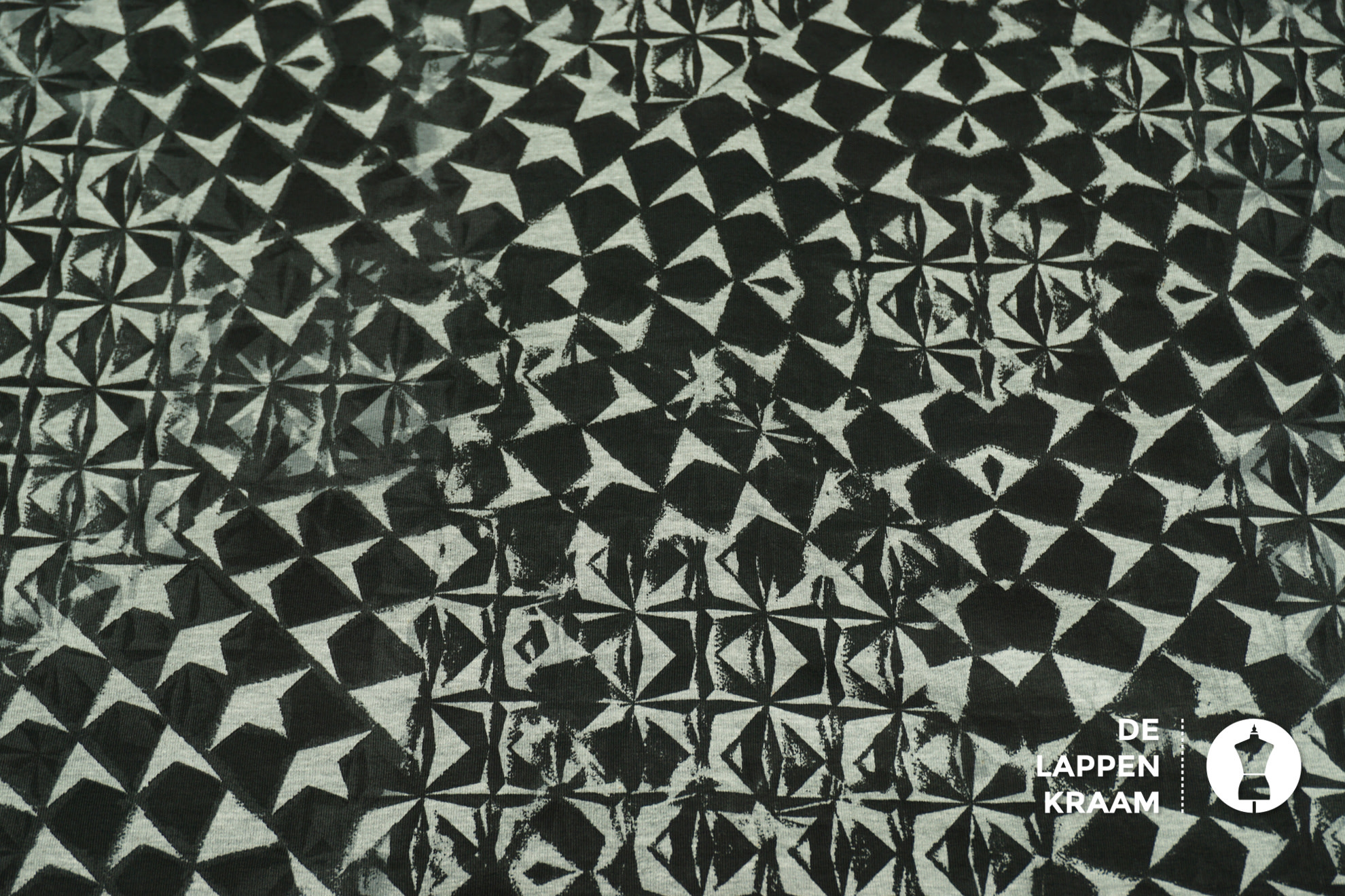 Coupon 346 French terry met abstract ruitjespatroon in grijs 180 x 150 cm