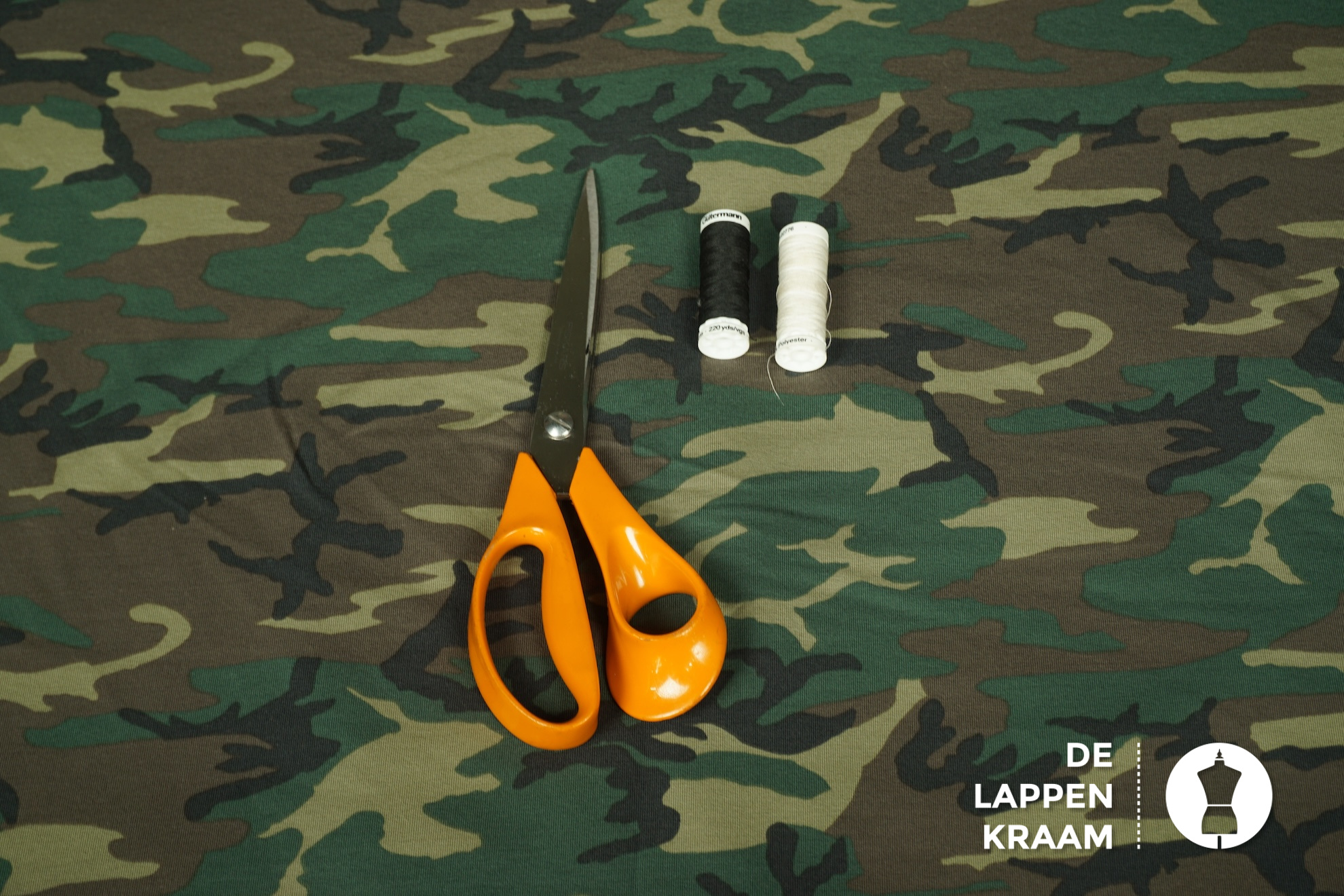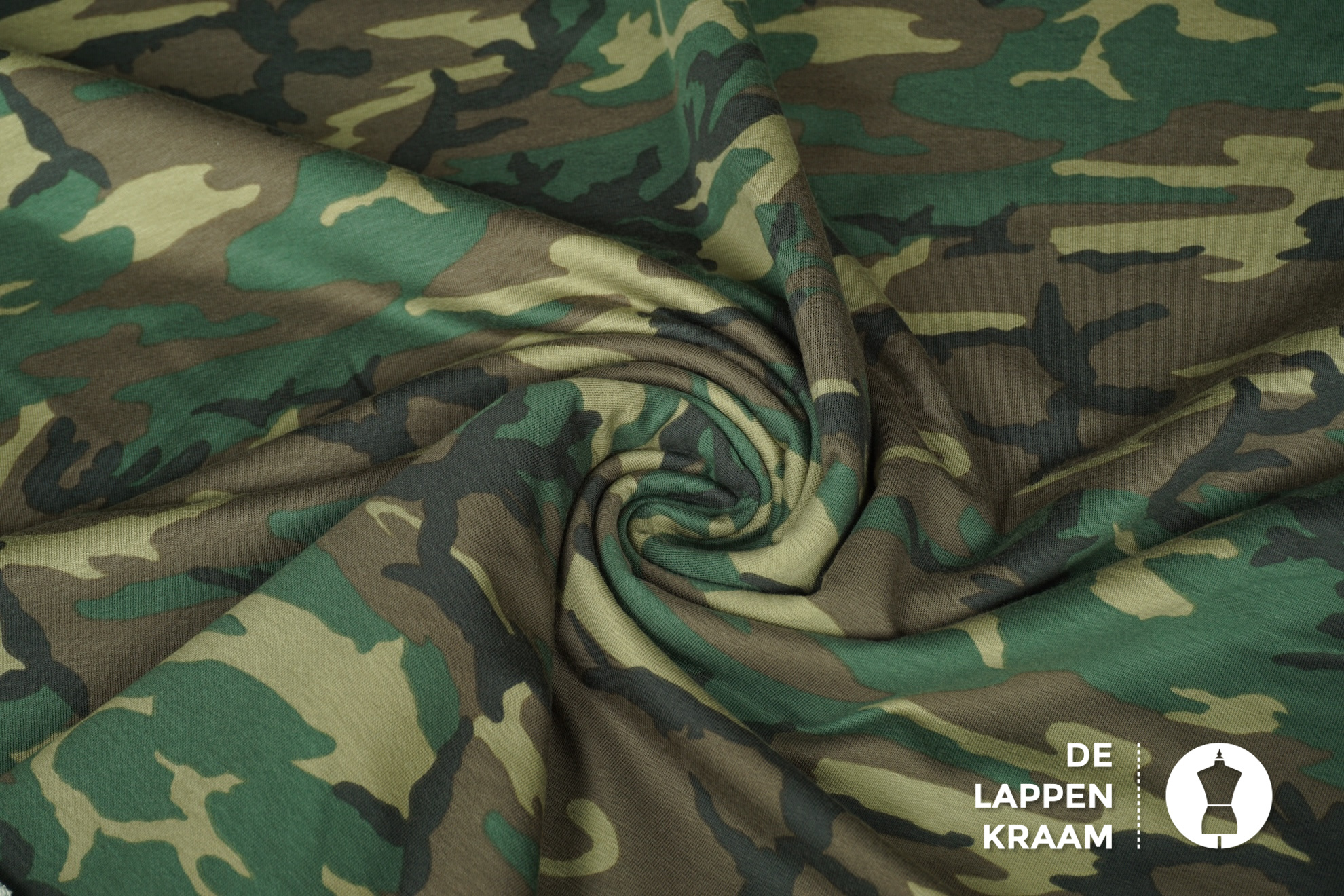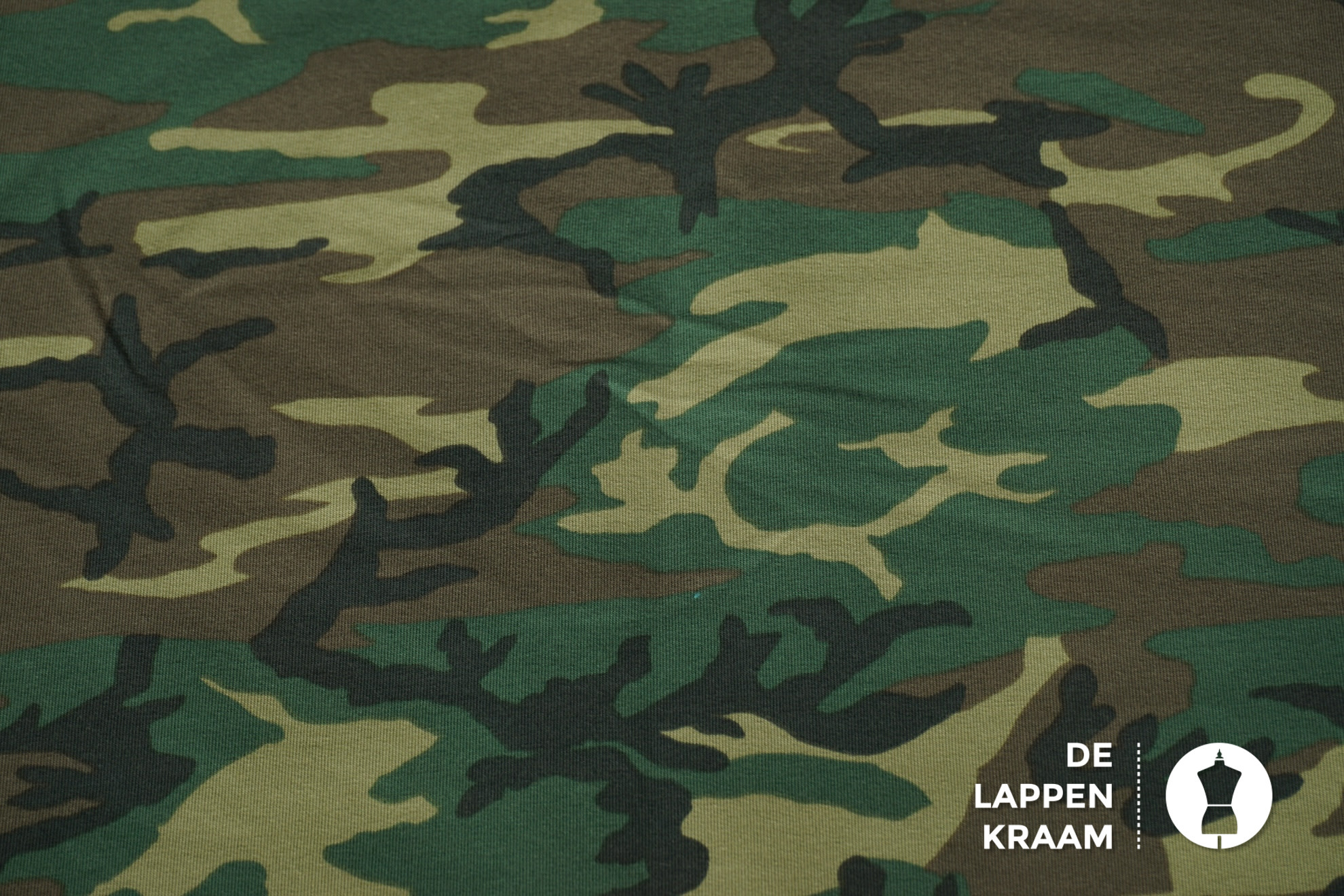 Coupon 36 French Terry in groene legerprint 170 x 150 cm