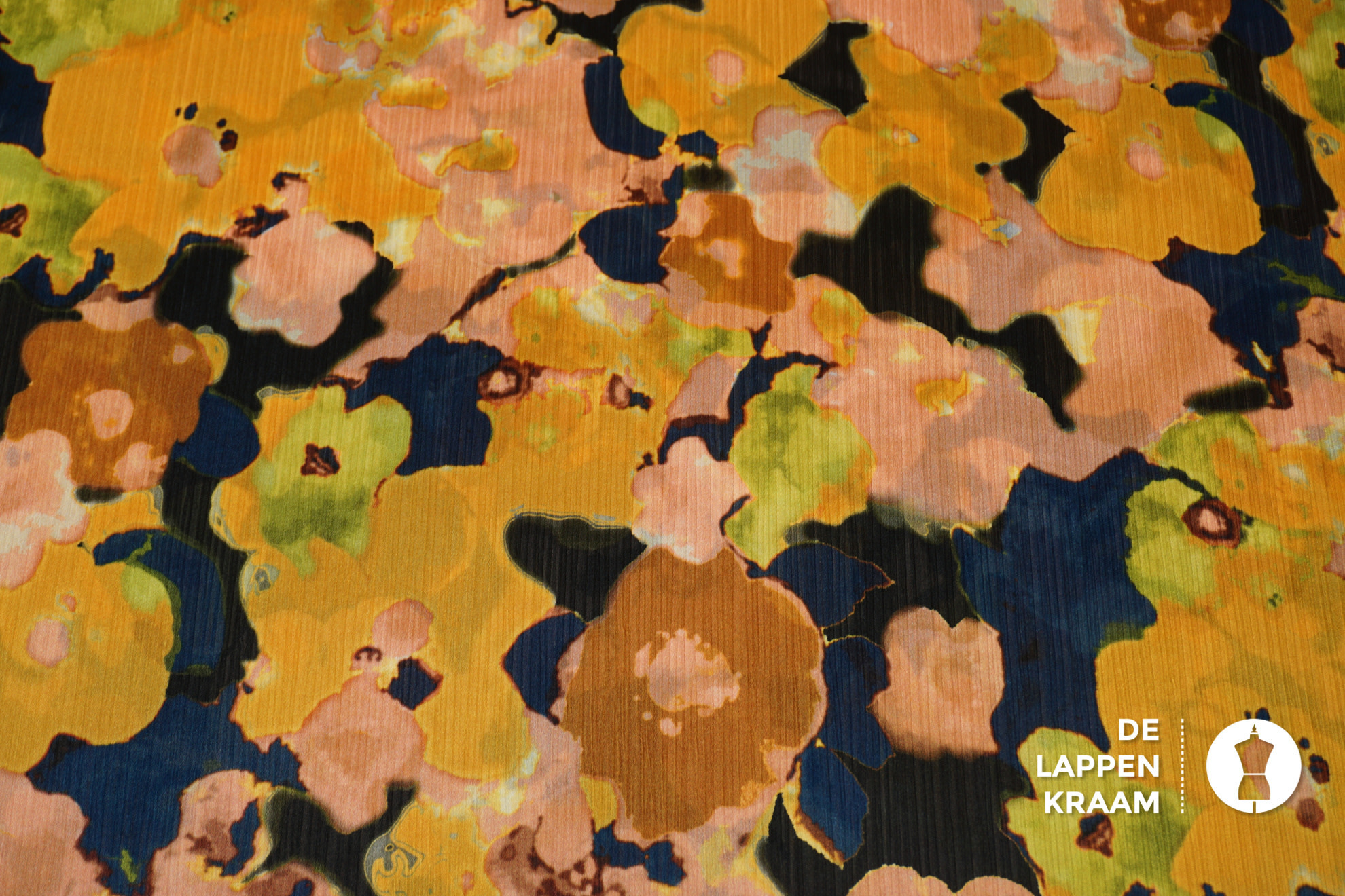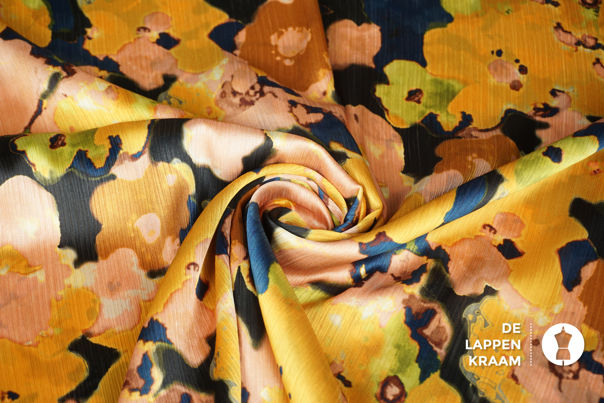 Coupon 370 Crinkle satijn van recycled polyester met bloemdessin 170 x 160cm