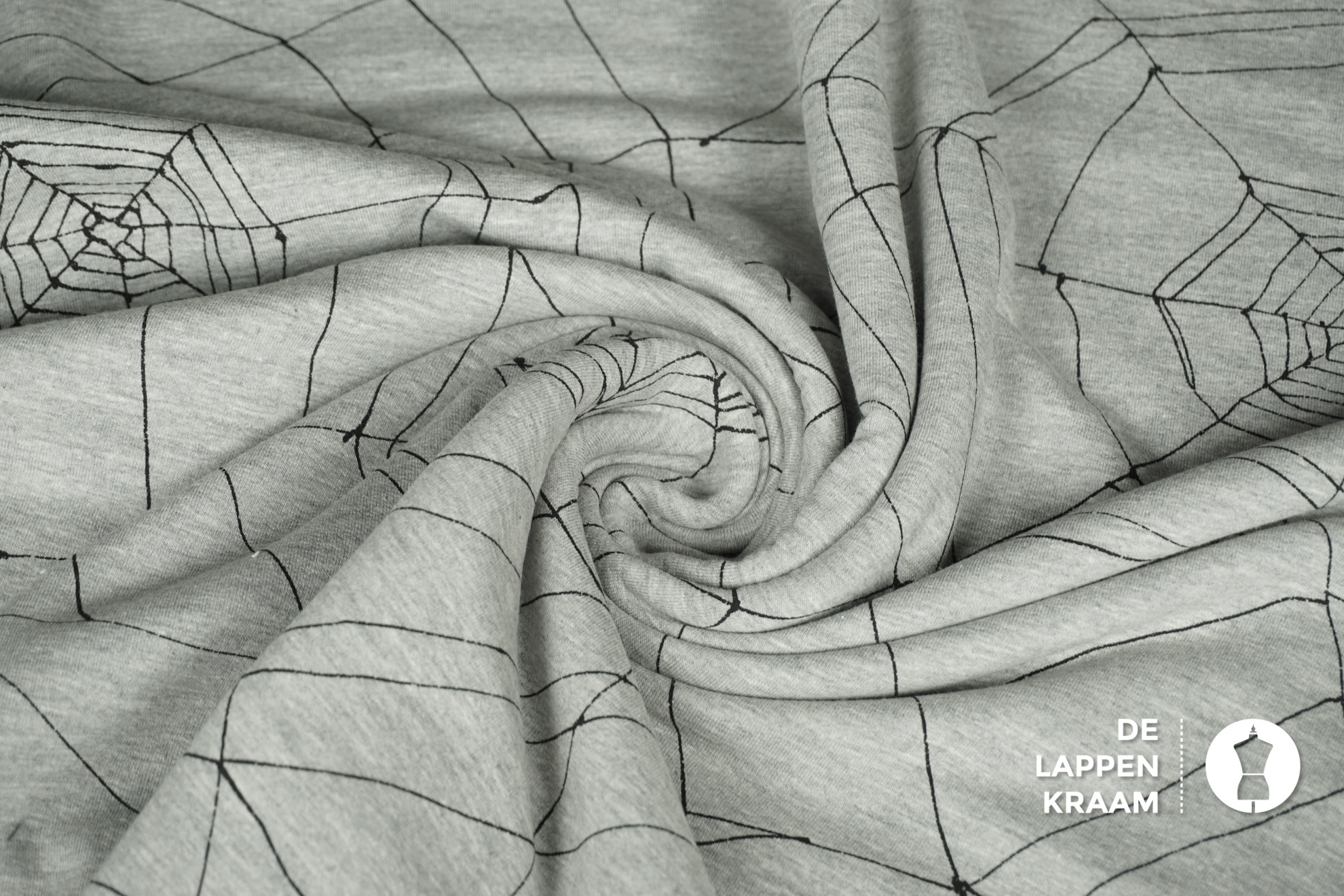 Coupon 380 French terry grijs met spinnenwebben 180 x 160 cm