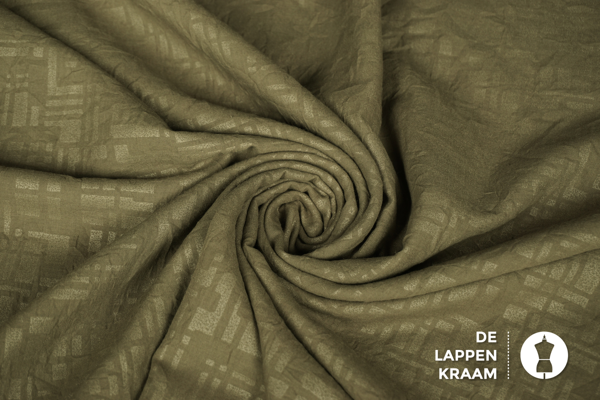 Coupon 418 Viscose legergroen met doolhofprint 180 x 150 cm