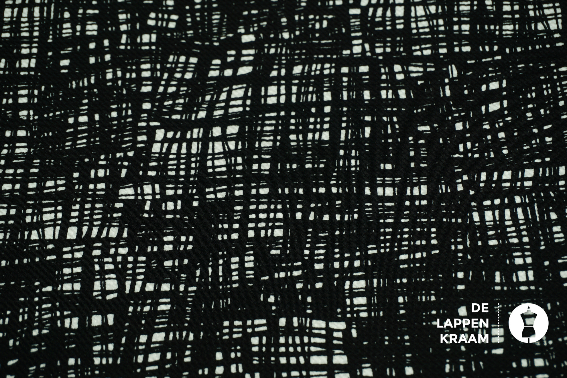 Coupon 431 Polyester tricot zwart wit strepenpatroon 180 x 150 cm