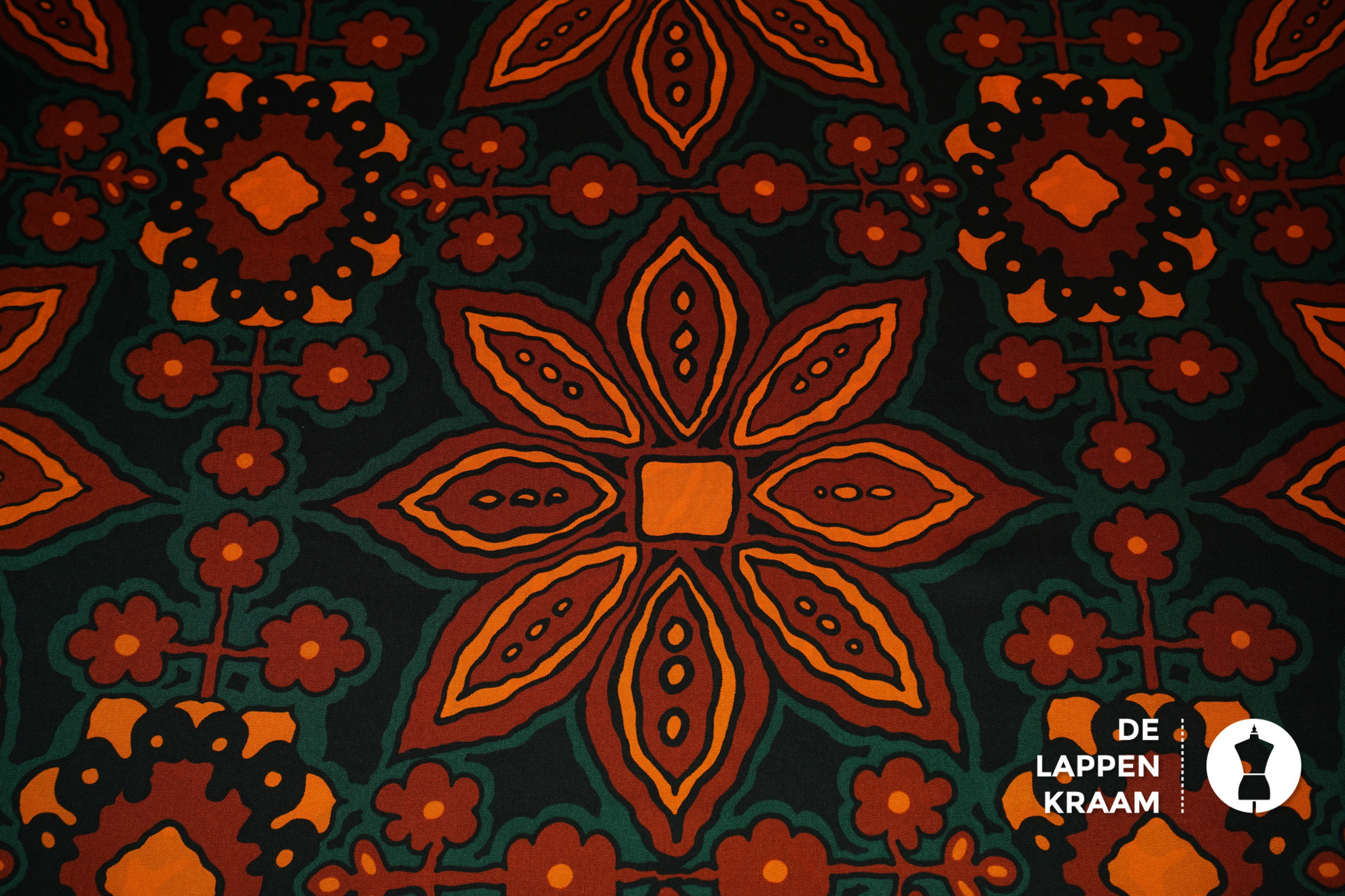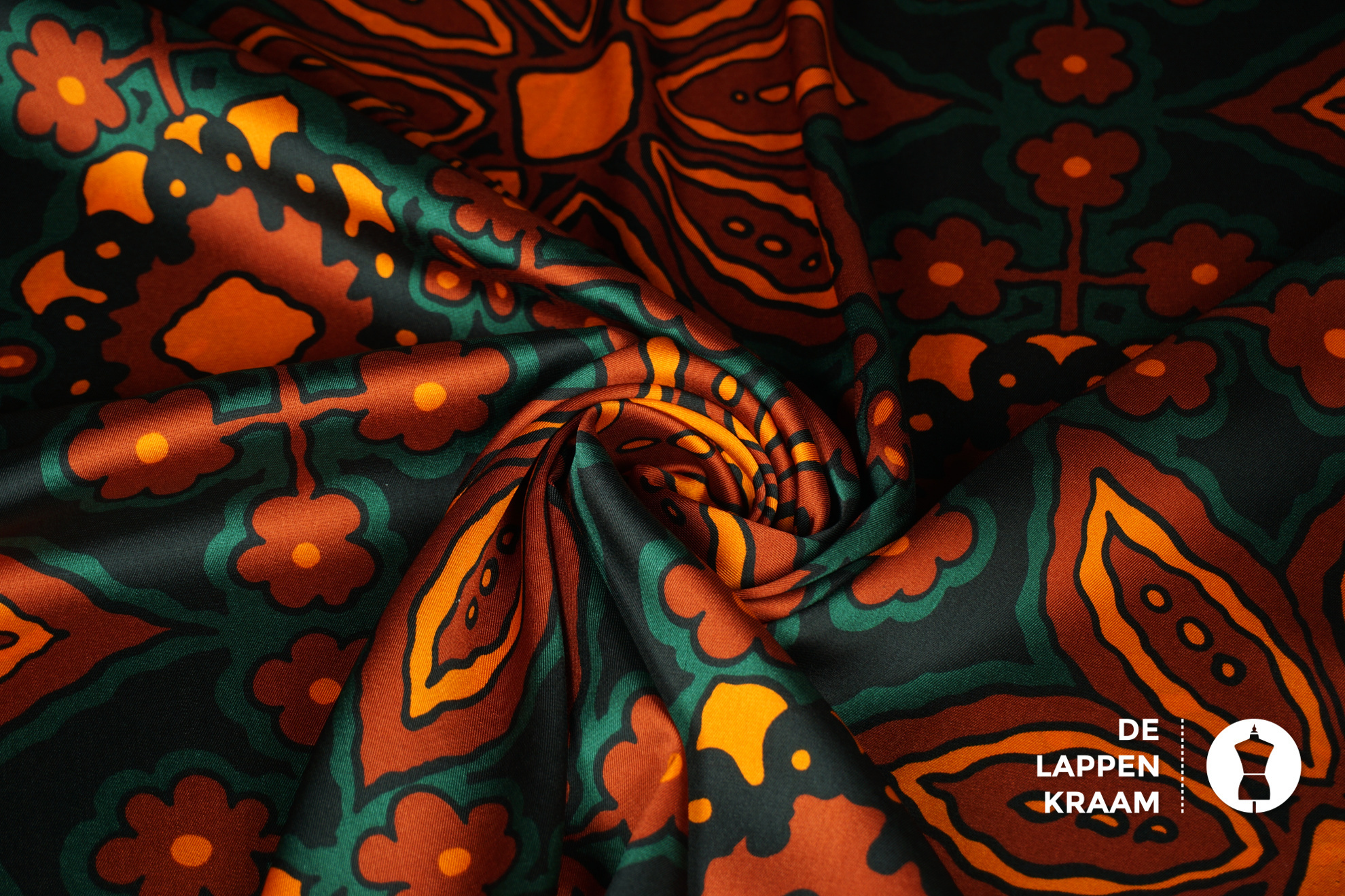 Coupon 464 Satijnen twill met groot bloempatroon in bruintinten 170 x 145 cm