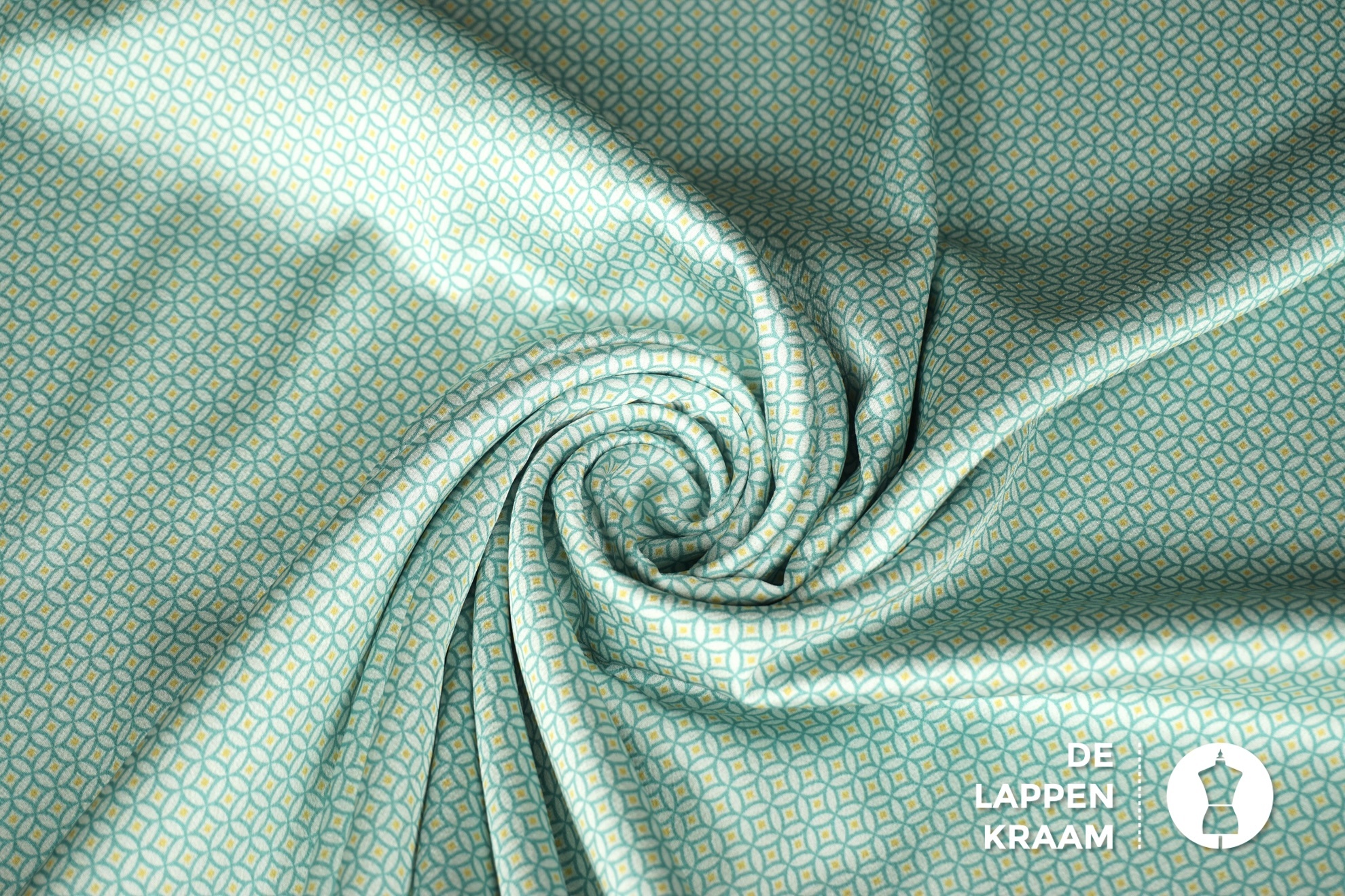 Coupon 699 Bubble satijn met mintgroen abstract dessin 180 x 145 cm