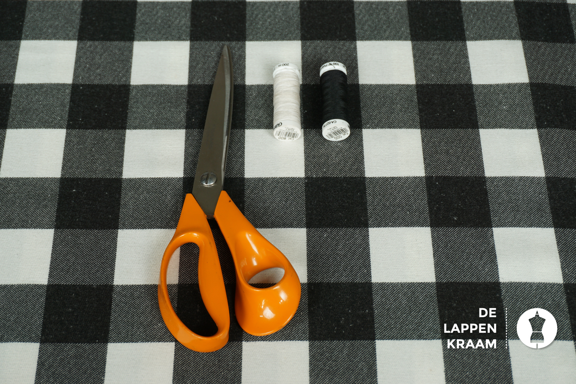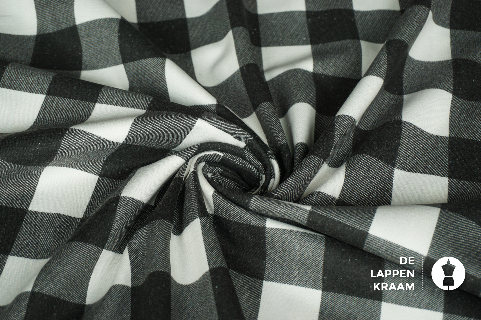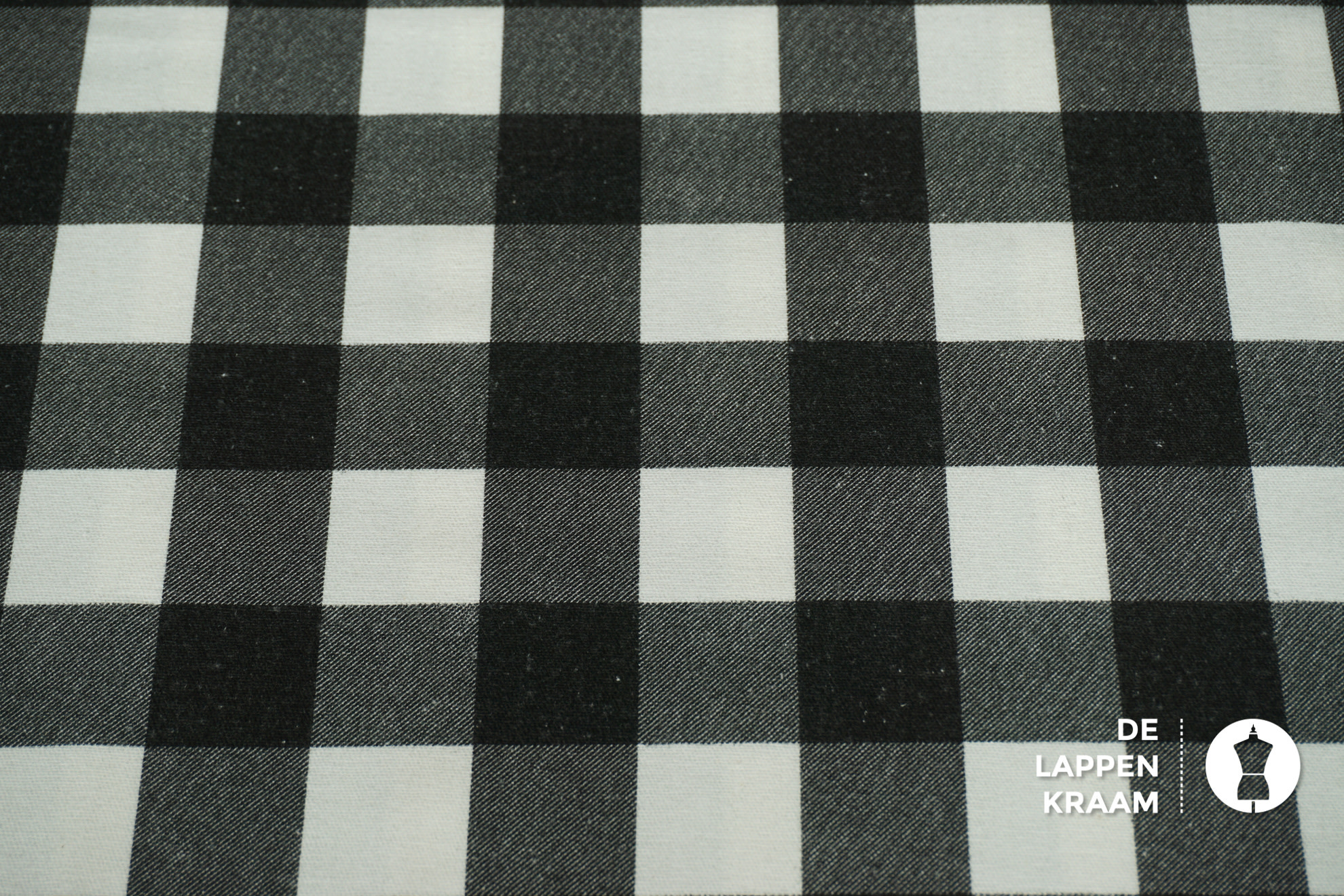 Coupon 706 Geblokte katoenen twill in zwart-wit 170 x 150cm