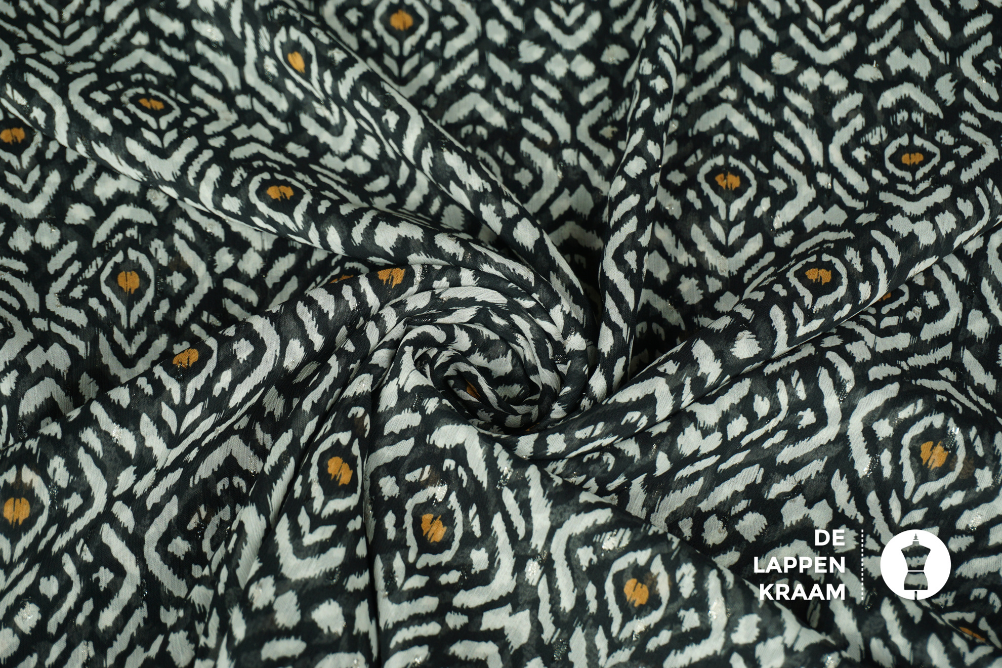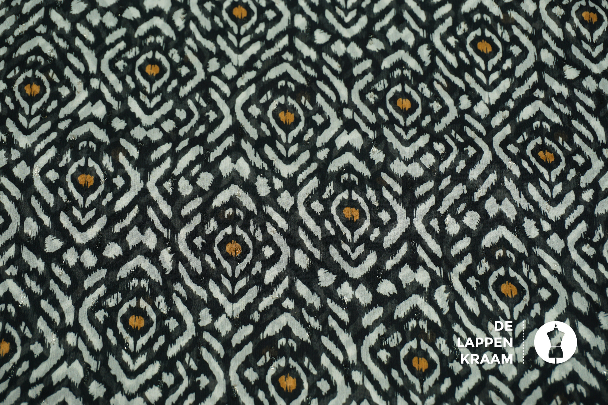 Coupon 718 Chiffon zwart wit met gouden details 180 x 150 cm