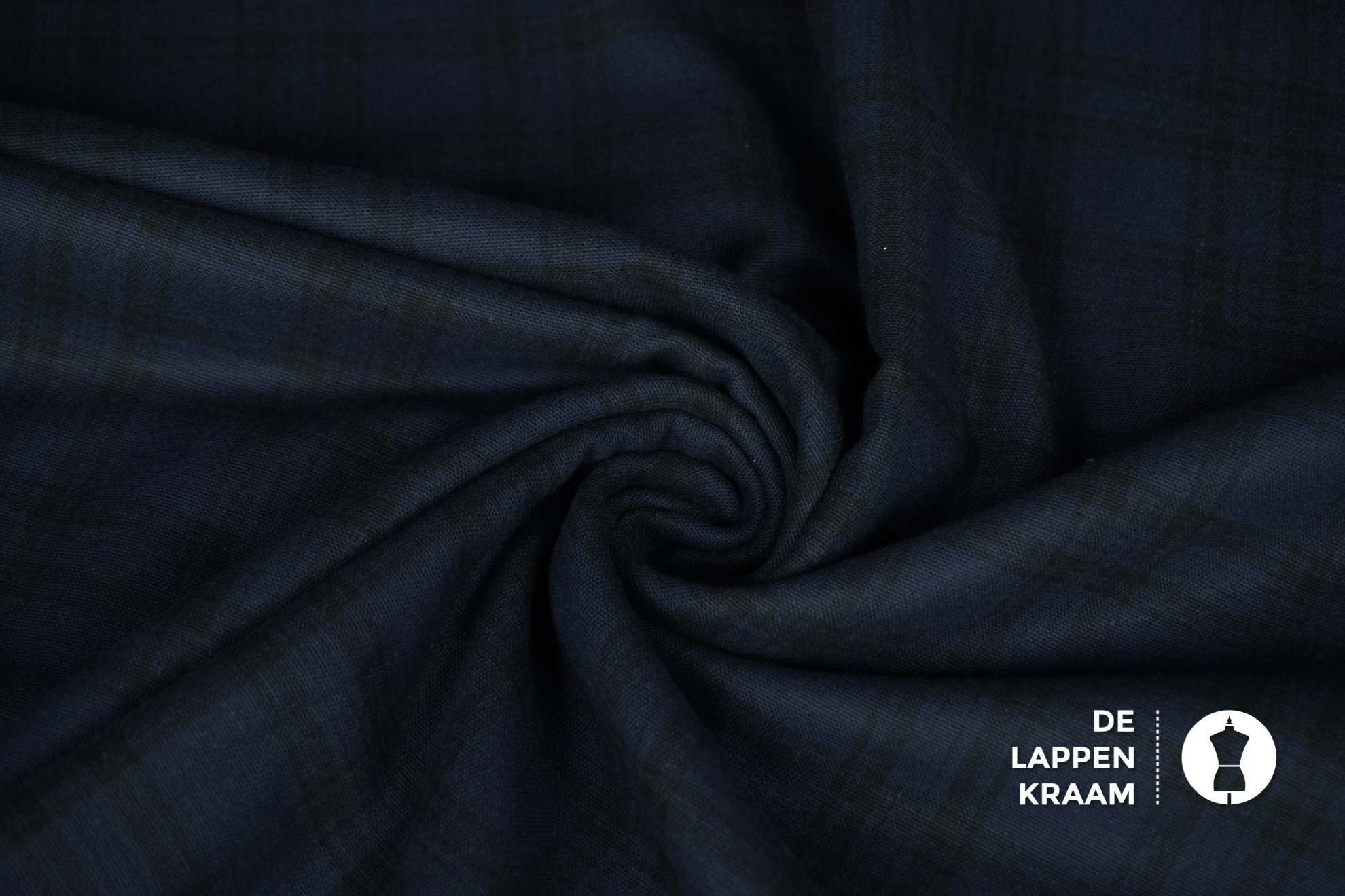 Coupon 738 Flanel donkerblauw met zwarte ruit 180 x 150cm