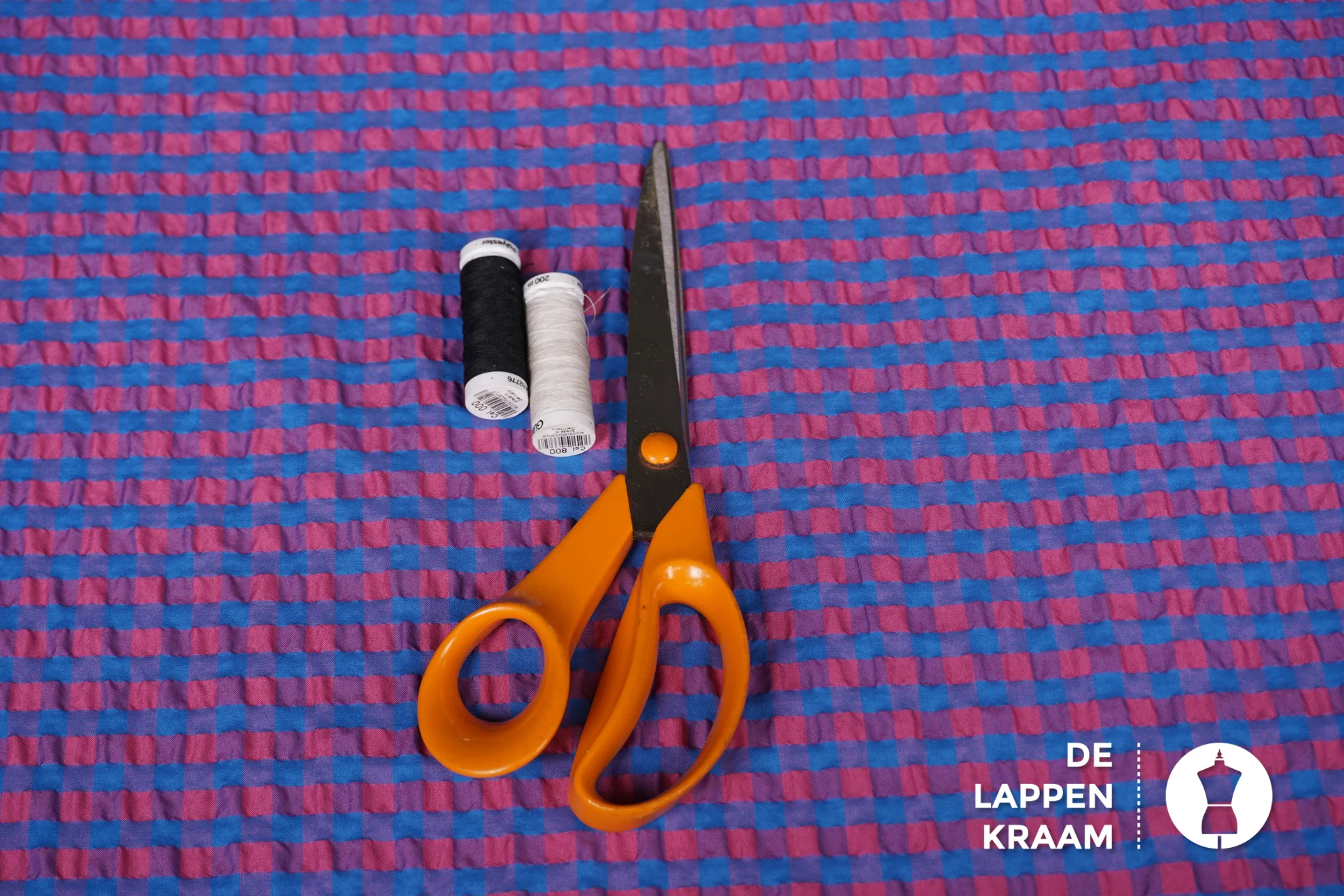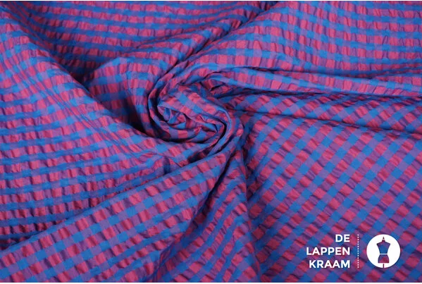 Coupon 84 Seersucker ruitje in blauw met roze 180 x 150 cm