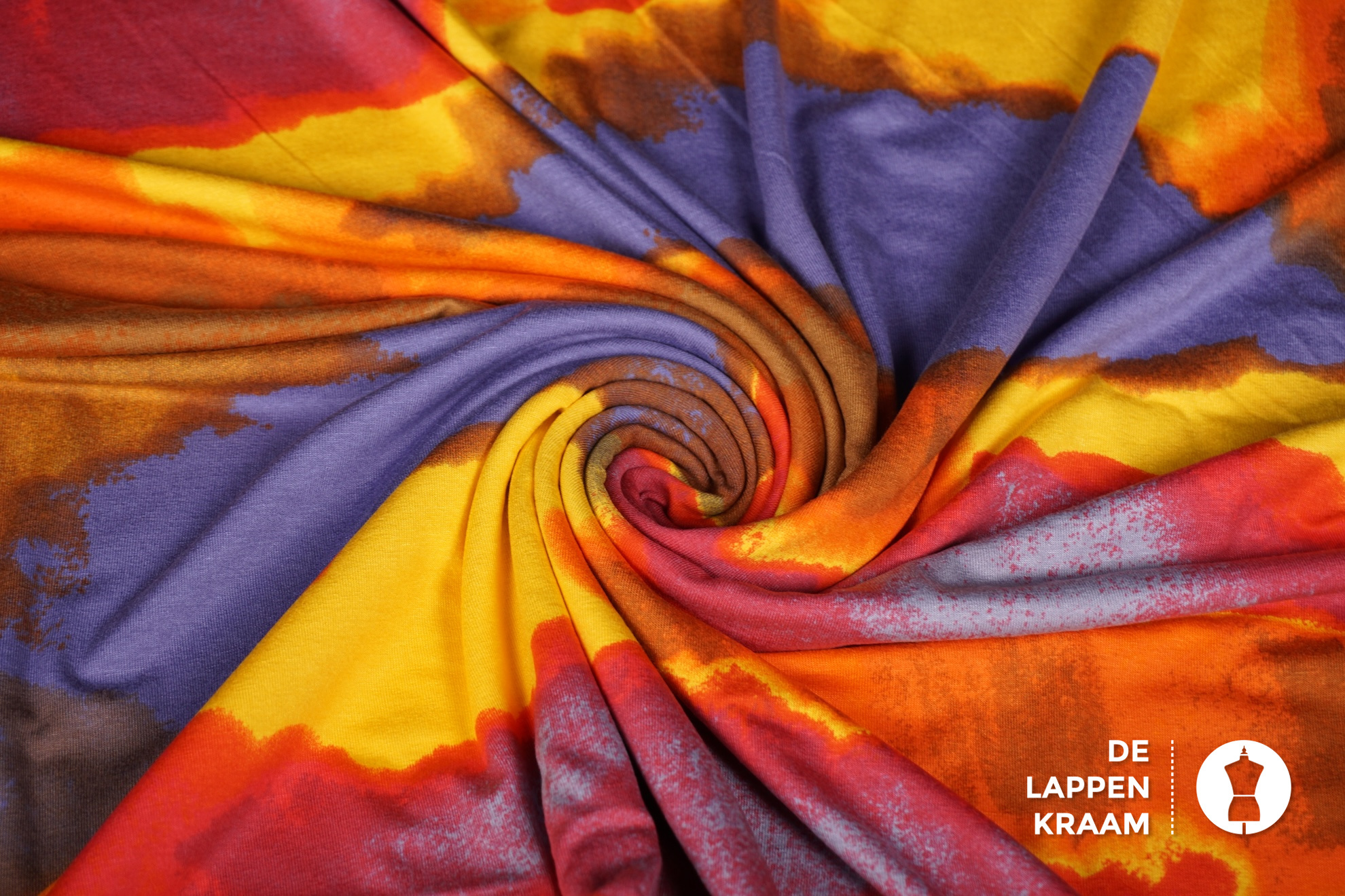 Coupon 910 Viscose tricot met kleurrijke waterverf vlakken 170 x 160 cm
