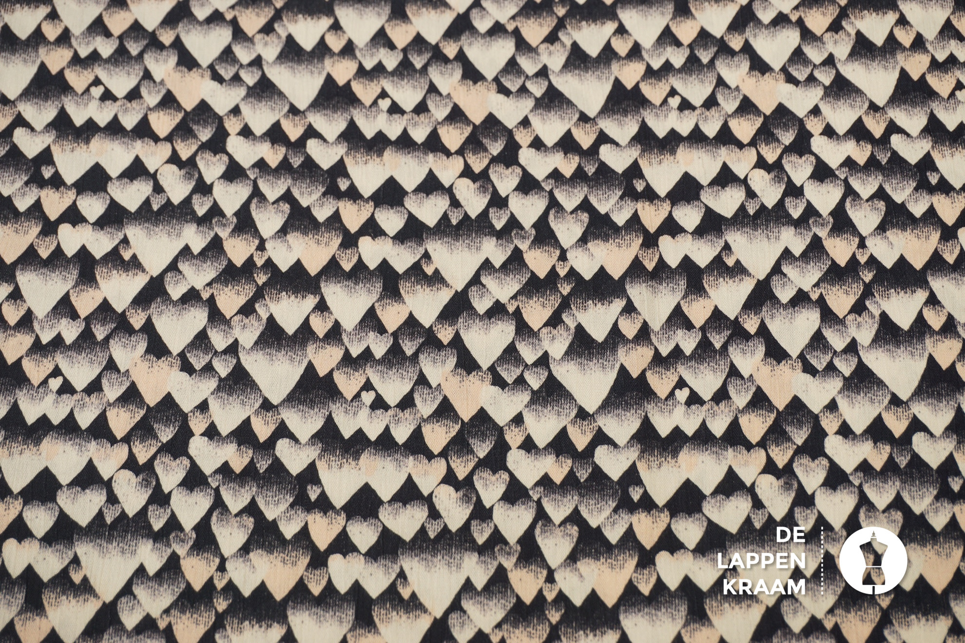 De hartjes zijn verschillend van grootte in de kleuren ecru en bleekroze. In de stof zit een kleine verticale "kreuk. Leuk voor een blouse of jurk.... Lees meer