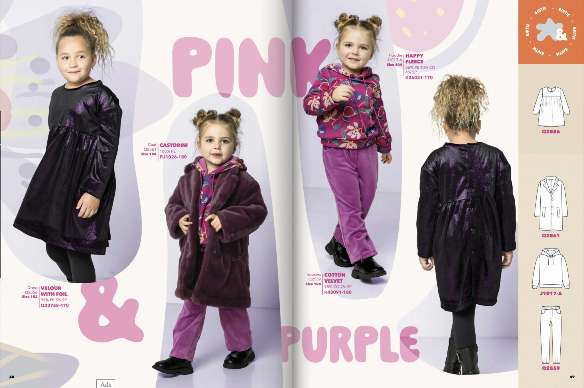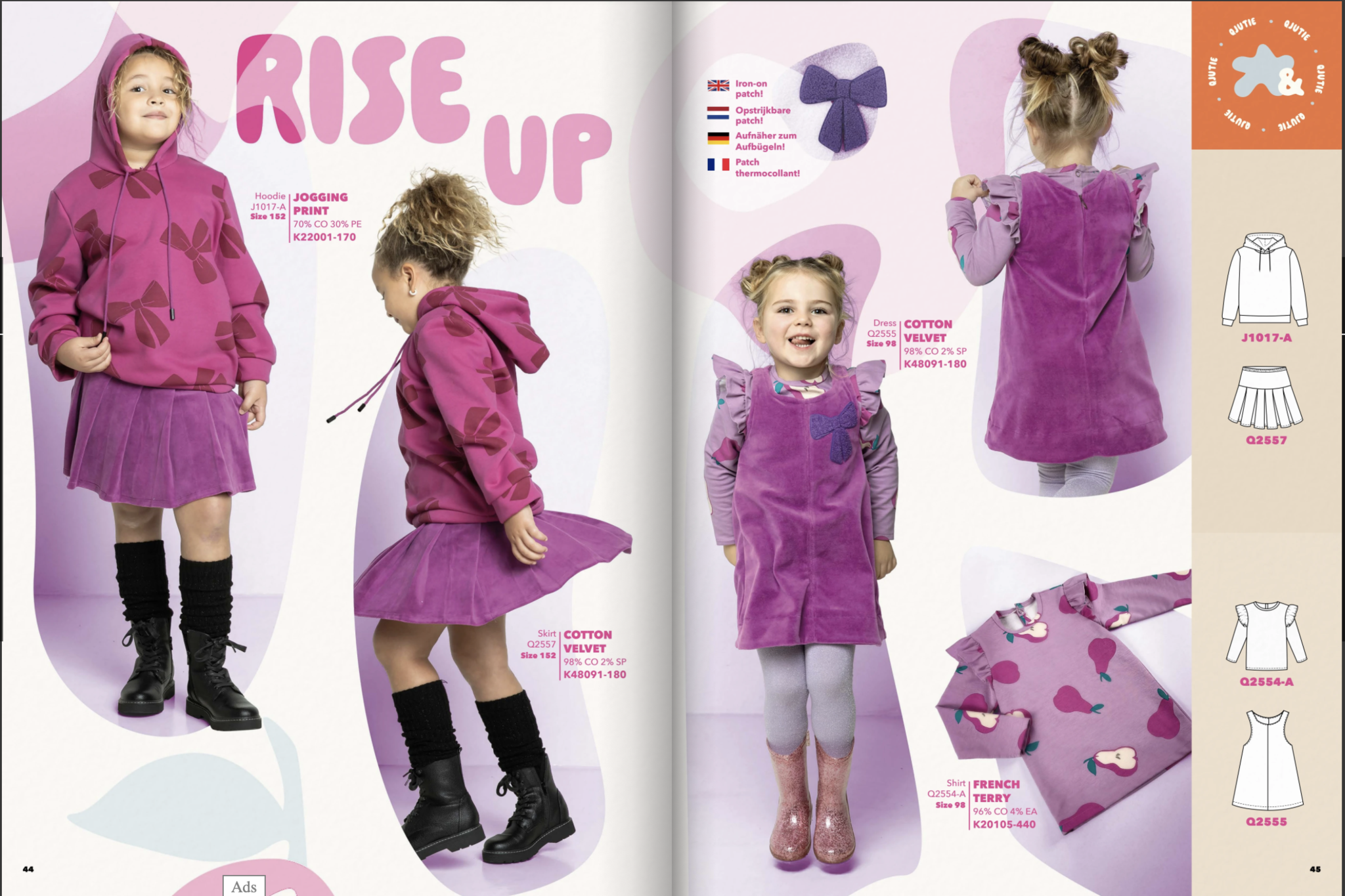 In de Qjutie & the Qjutest #2 is deze stof gebruikt voor verschillende modellen. Zo maak je er bijvoorbeeld een leuk jurkje van zoals de Q2555, maar je kunt ook aan de slag met een rokje, bijvoorbeeld de Q2557. De stof kun je ook gebruiken voor een leuke broek, zoals de Q2559. Al deze patronen staat in de Qjutie & the Qjutest #2.