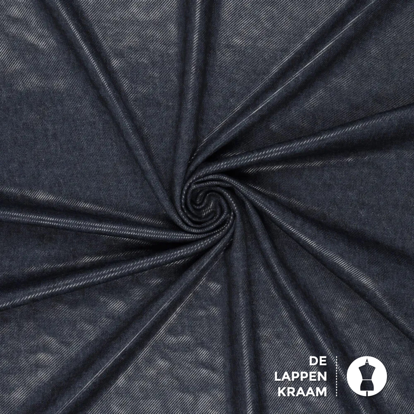 Hele toffe Punta di Roma in denim look. Door de zwarte foil print die in diagonale strepen over de stof loopt lijkt het alsof de stof is geweven in twillbinding en heeft het een lichte glans. Door de toevoeging van elastaan is de stof heerlijk rekbaar.... Lees meer