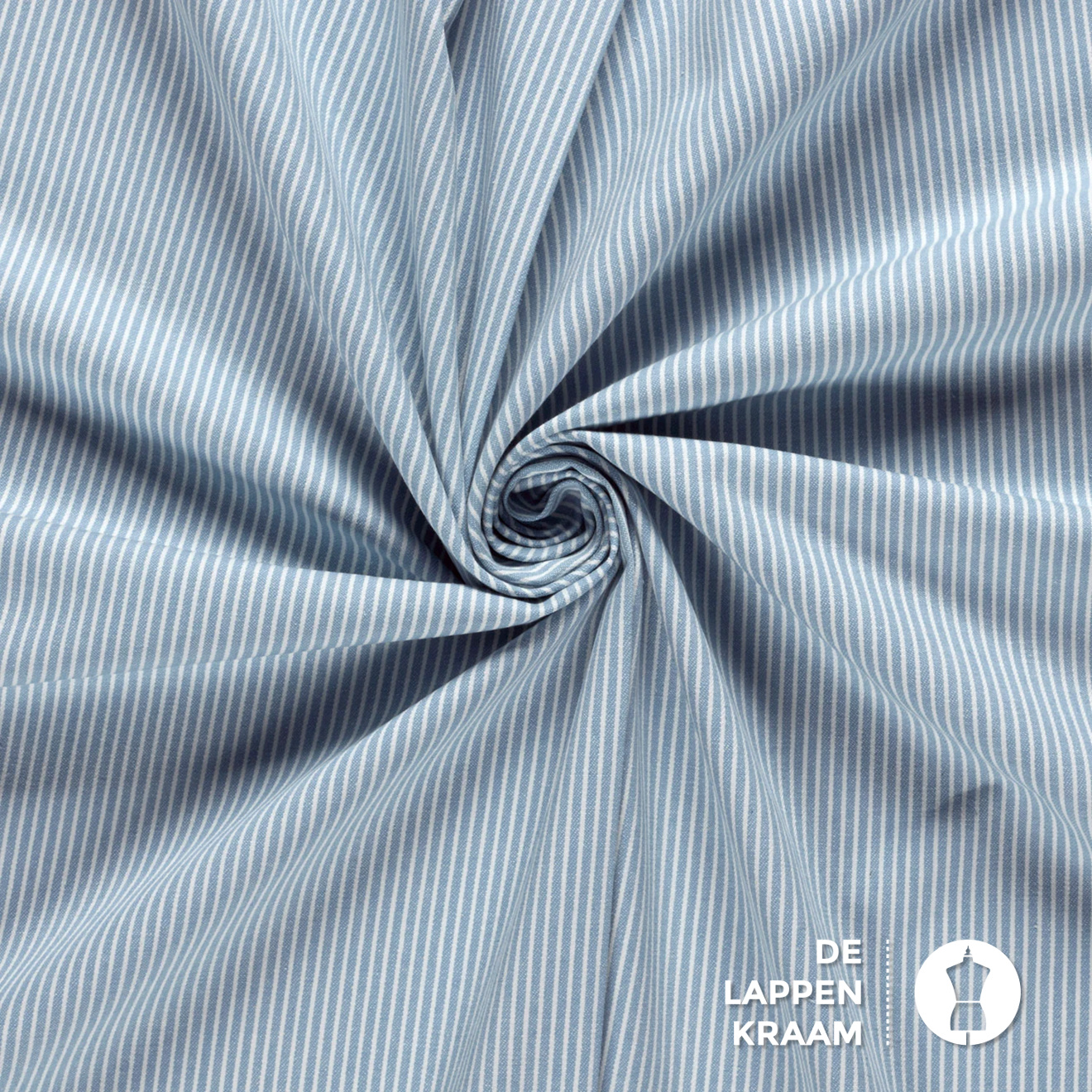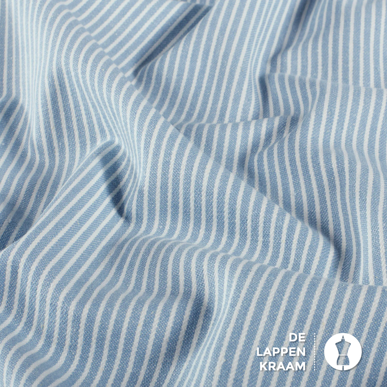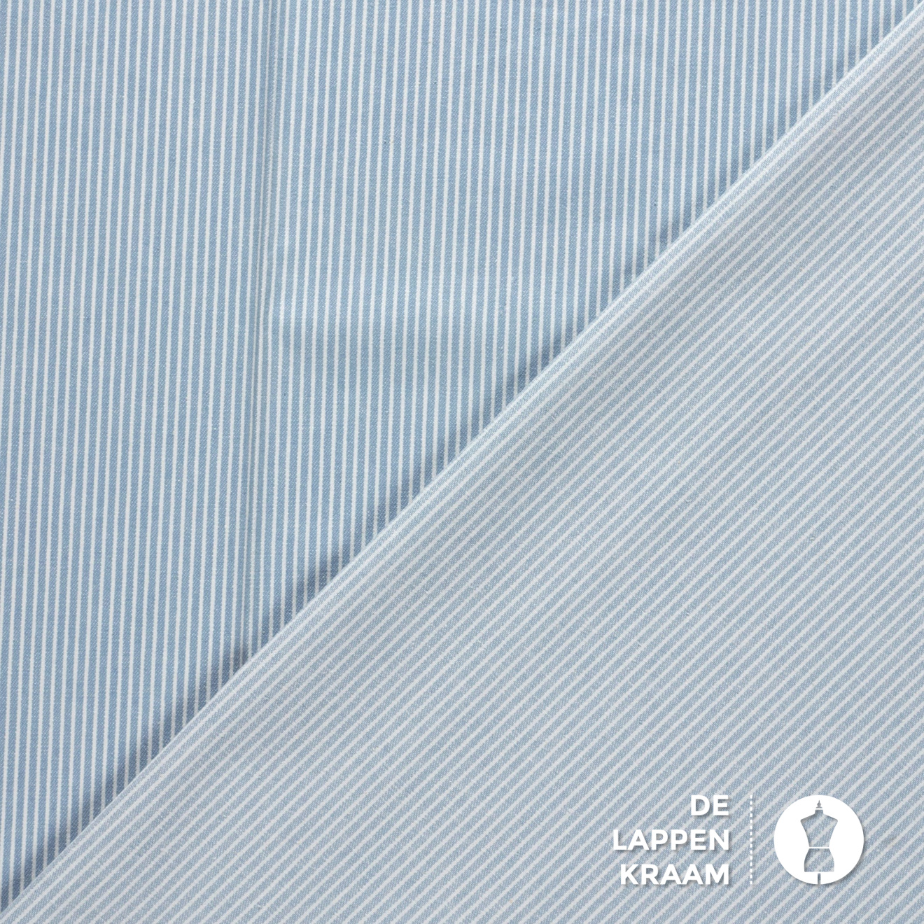 Denim stof lichtblauw met witte streepjes