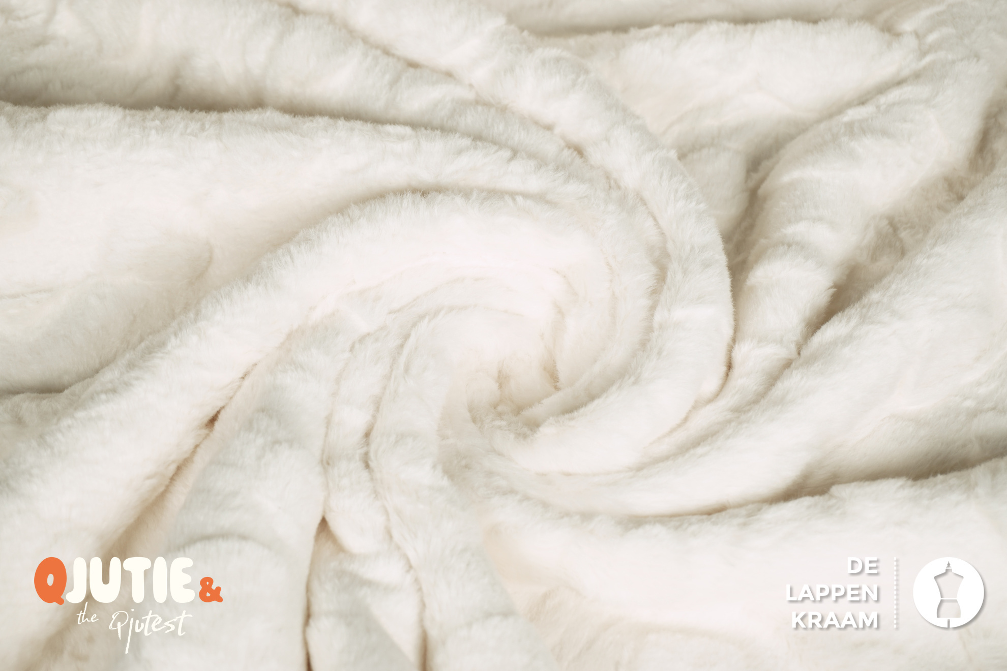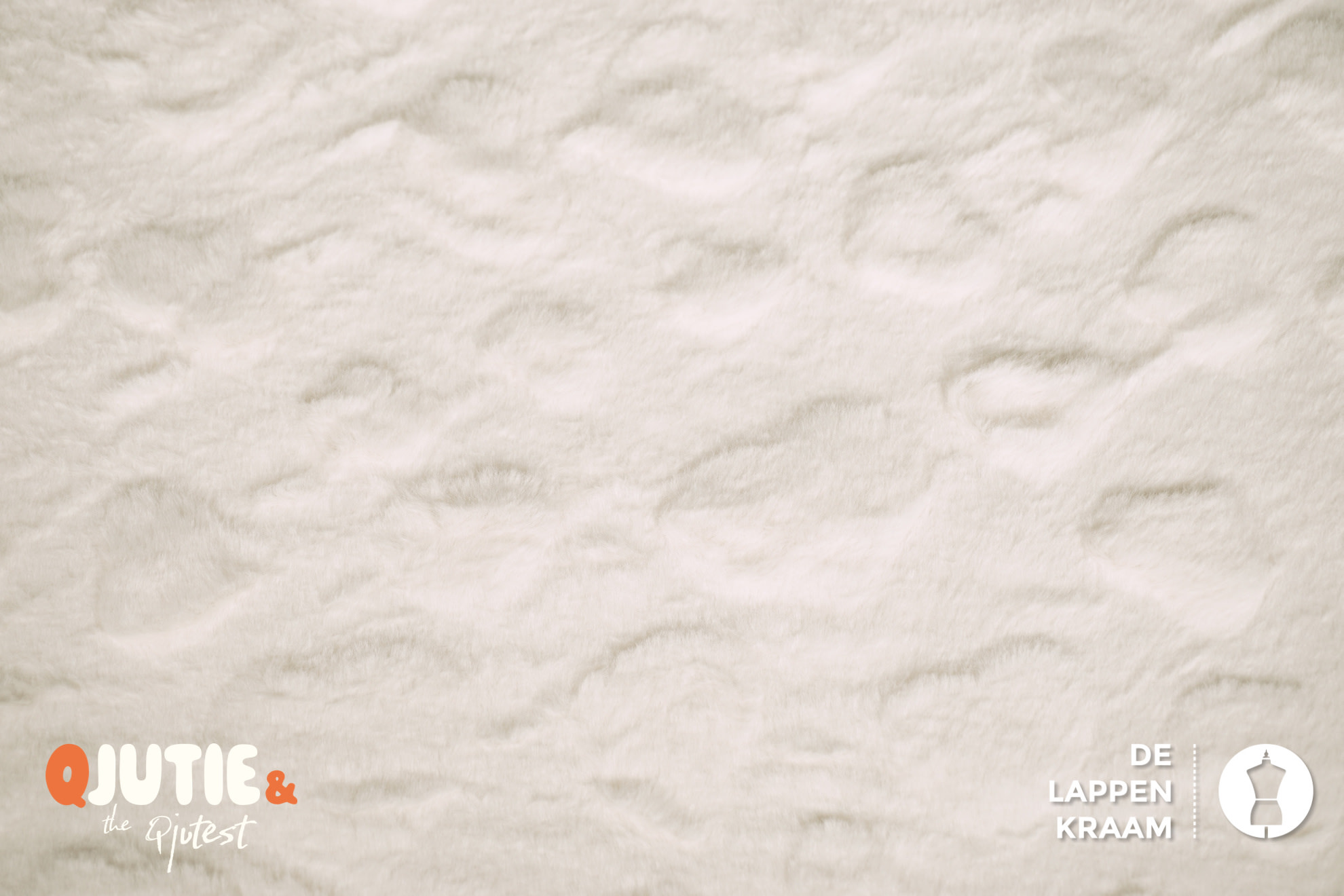 Qjutie & the Qjutest Fake fur stof roomwit met hartjes