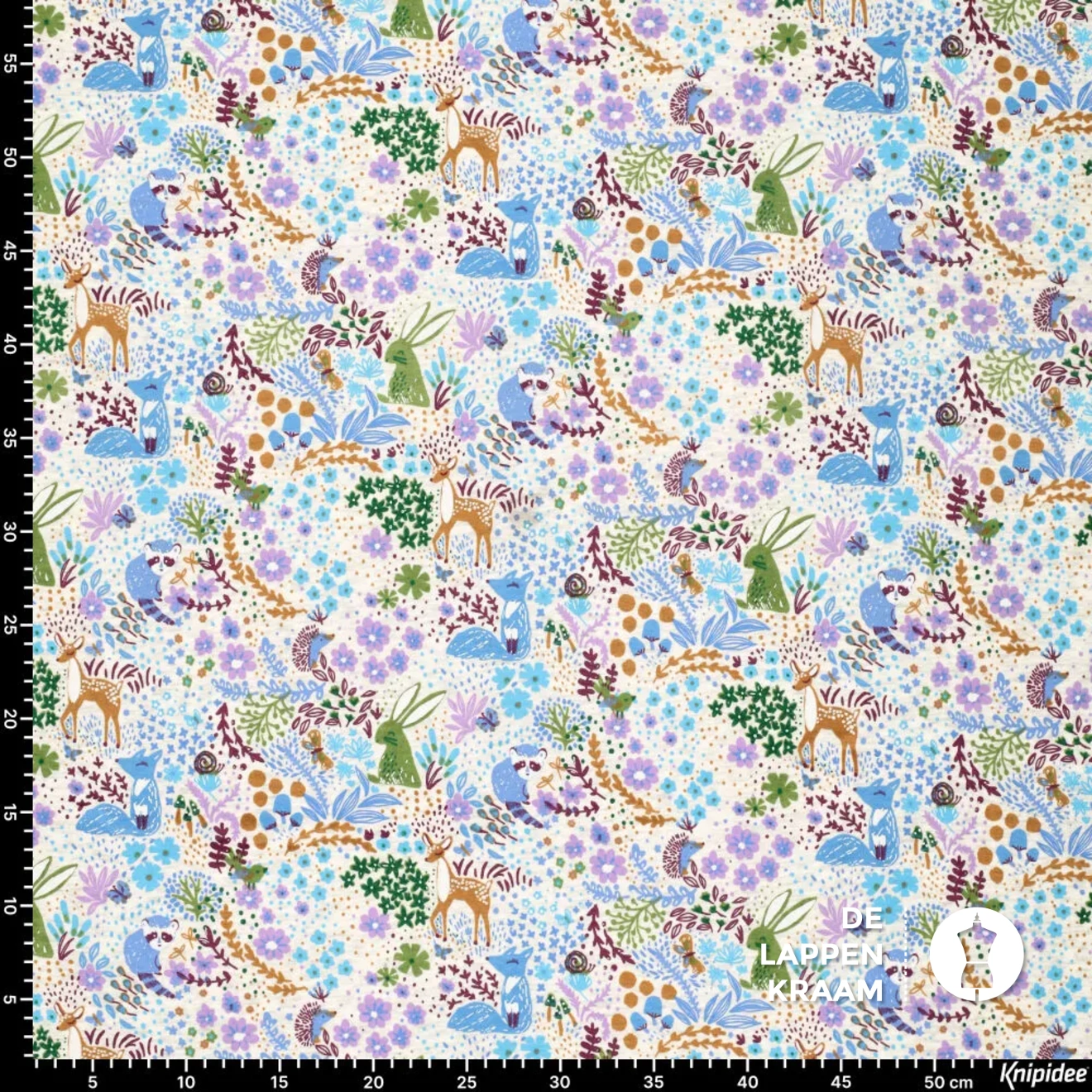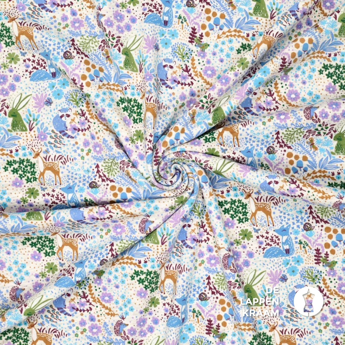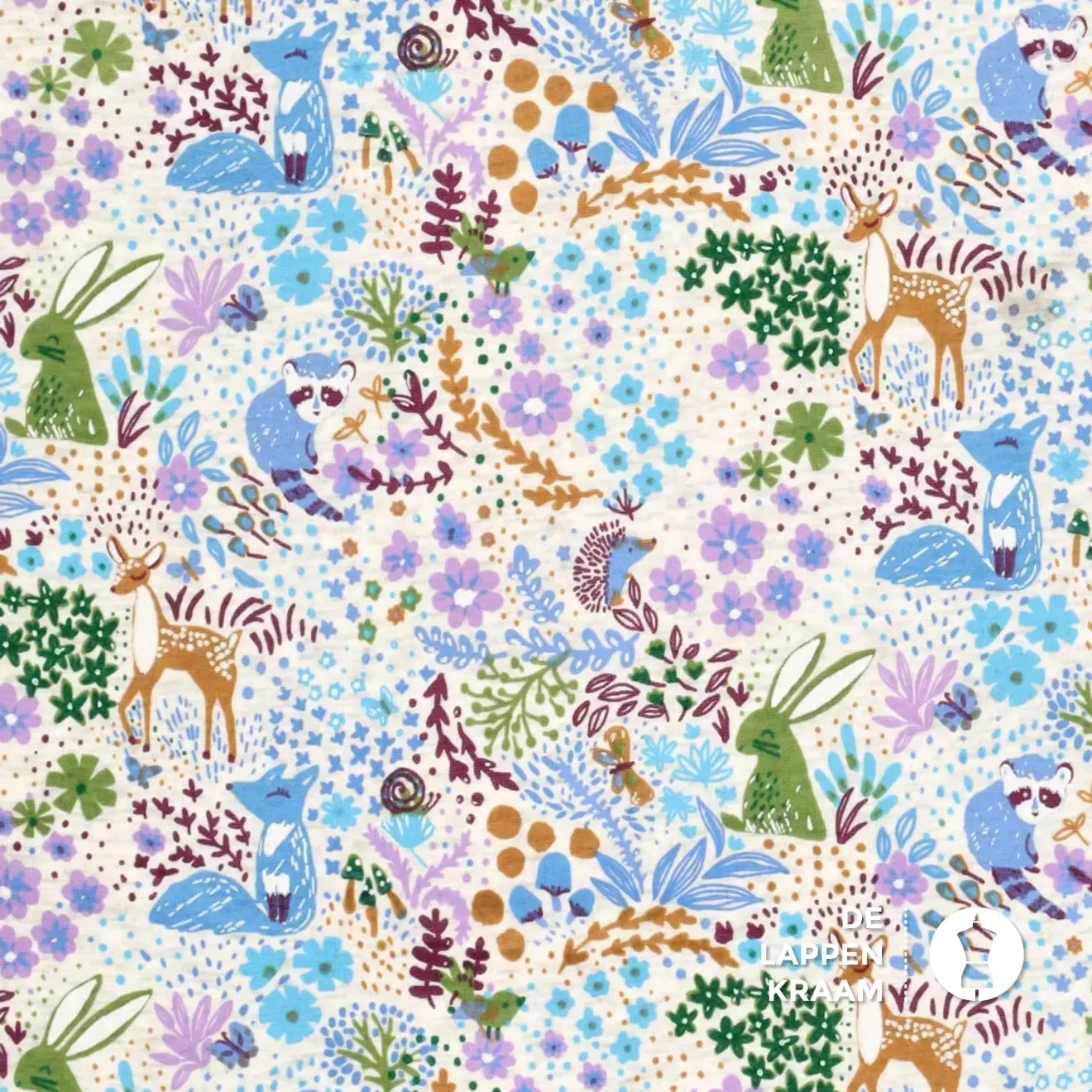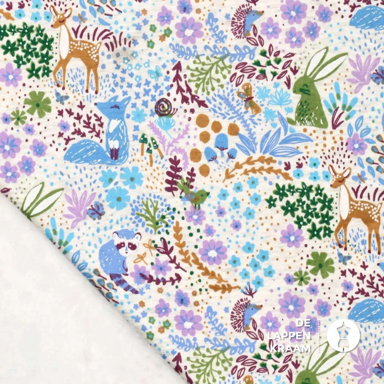 Heerlijk zachte jogging in het lichtgrijs met een schattige print van vosjes, hertjes en konijntjes in kleuren als lila, blauw, groen en caramel.... Lees meer