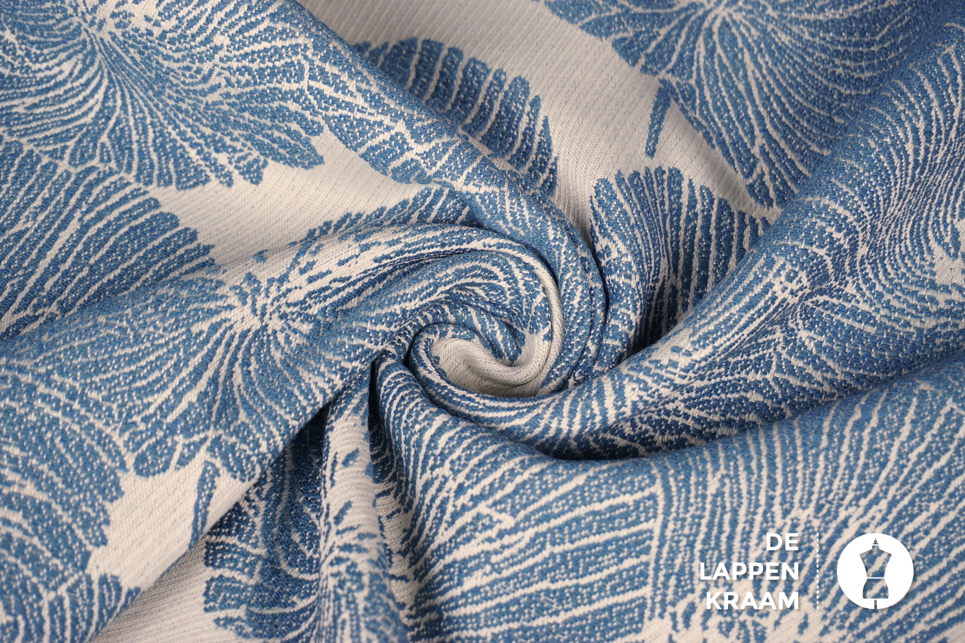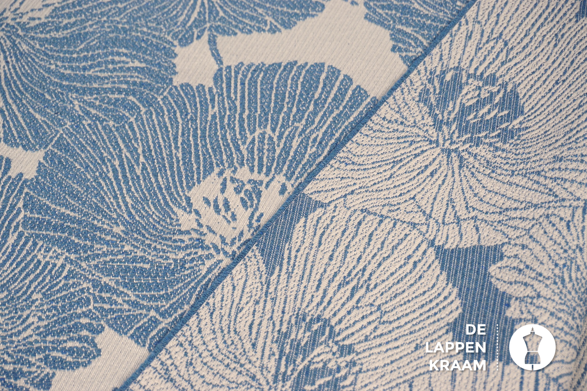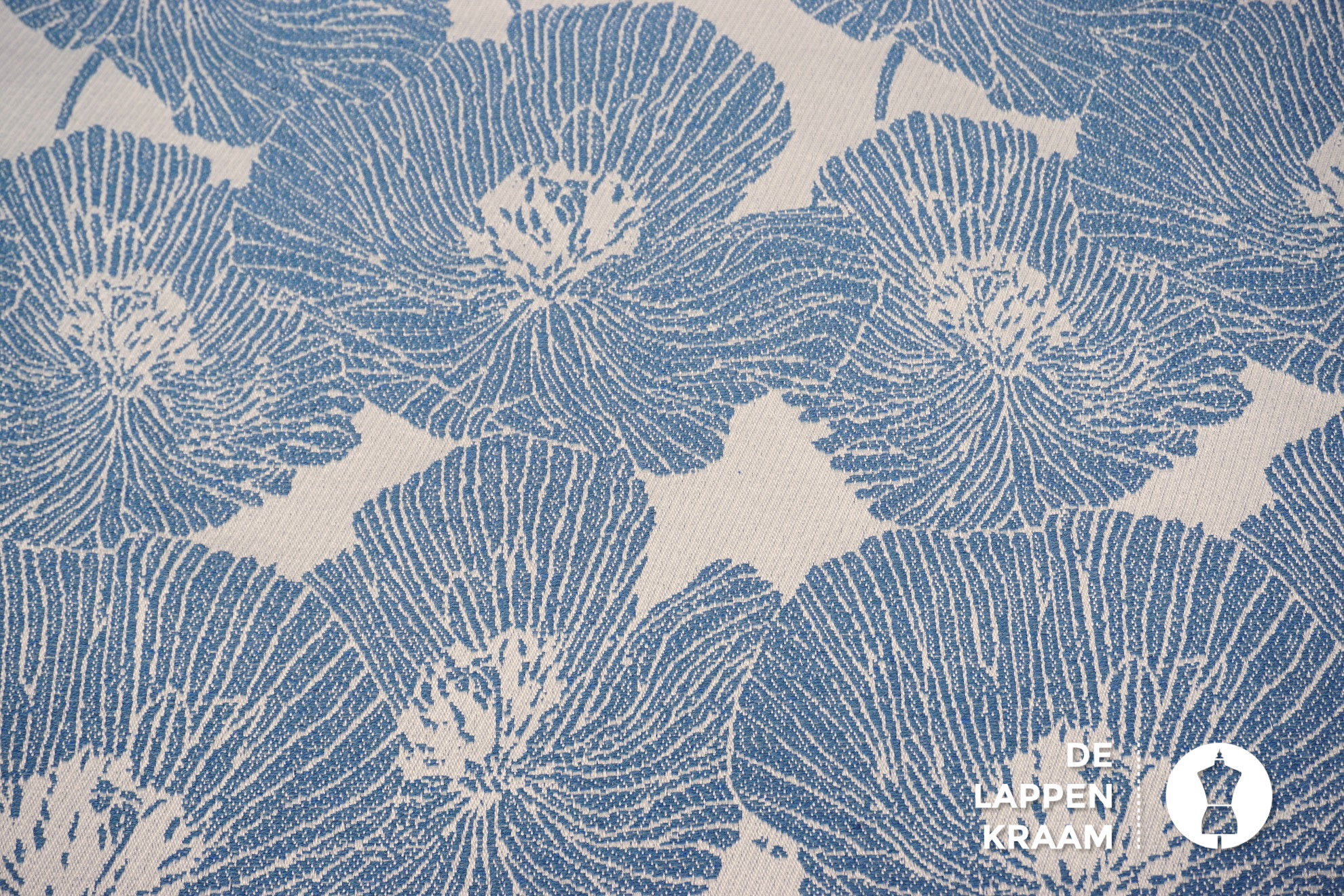 Gebloemde jacquard ecru met jeansblauw