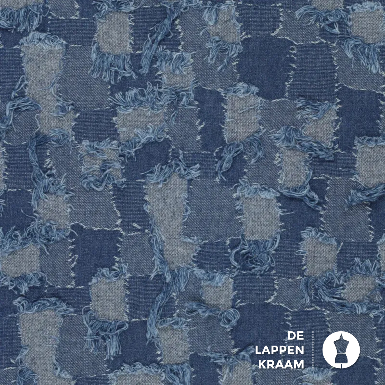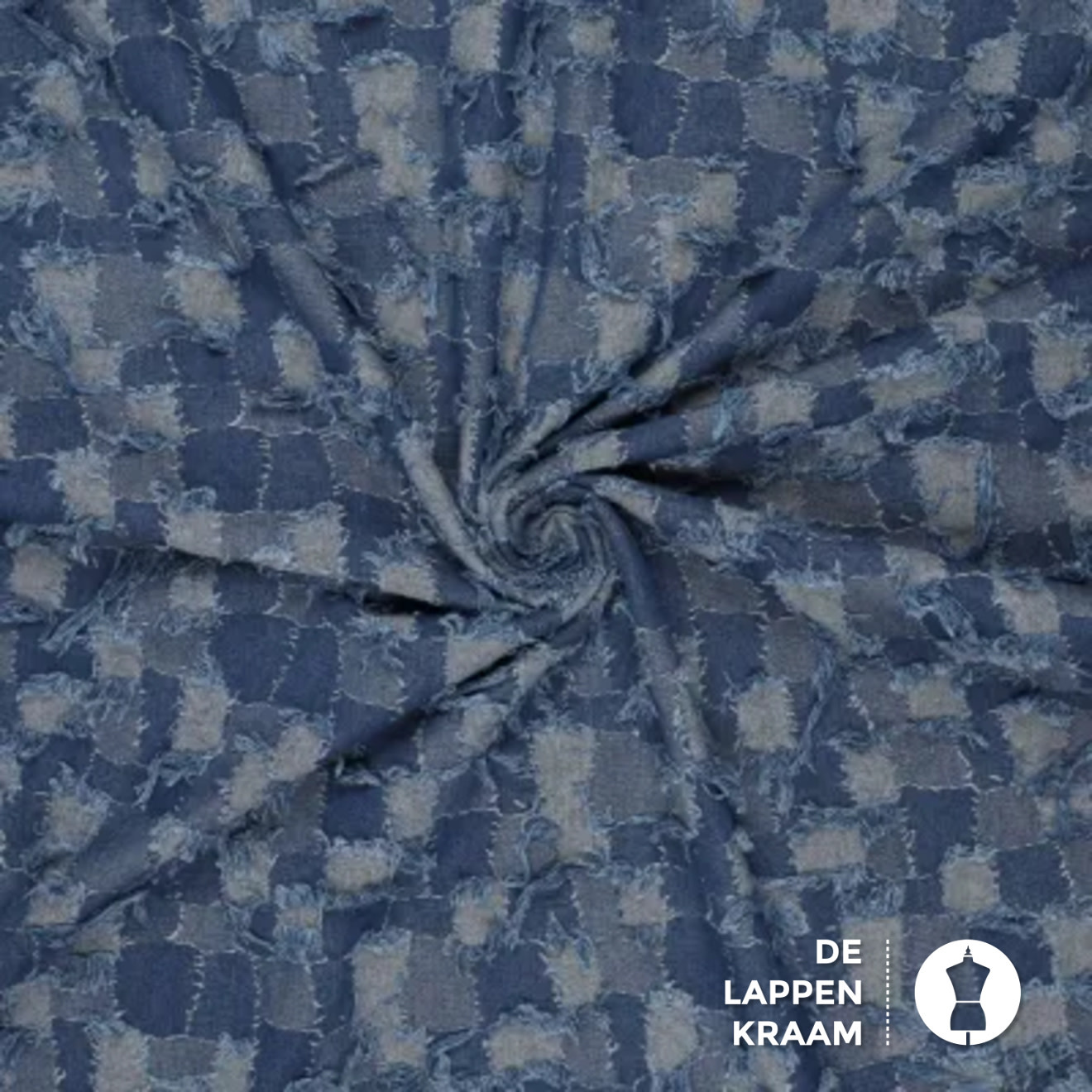 Geblokte jeansstof met rafels