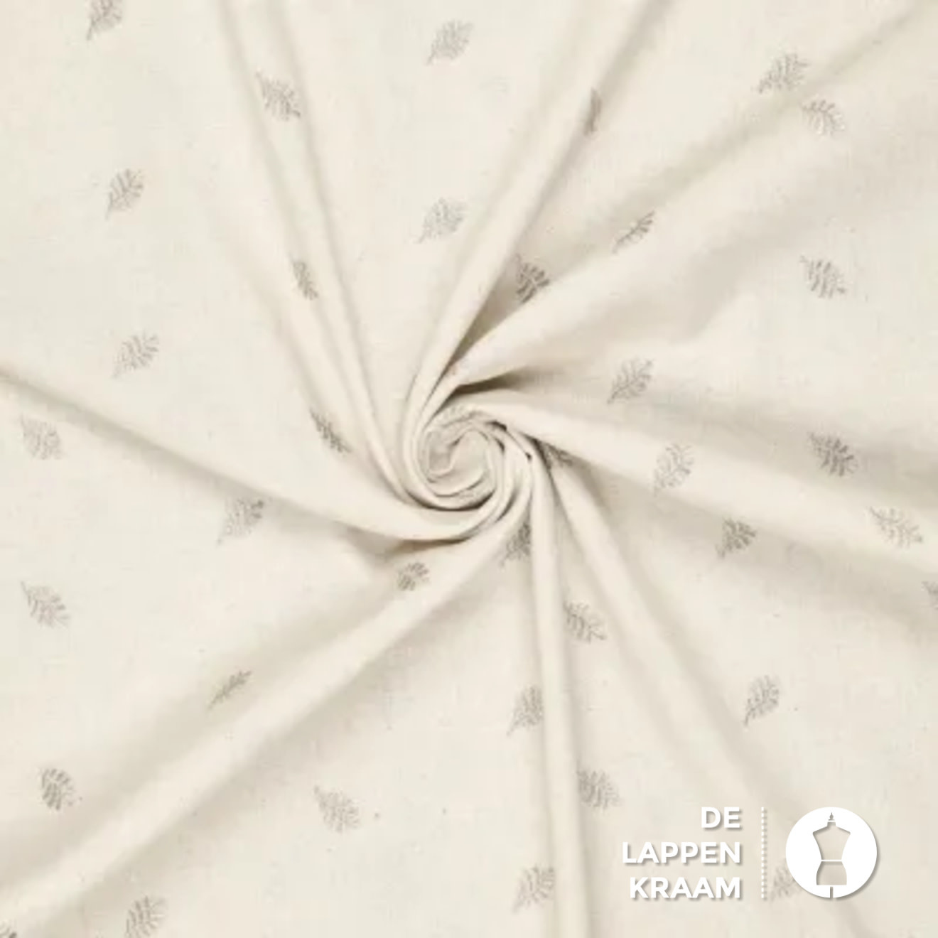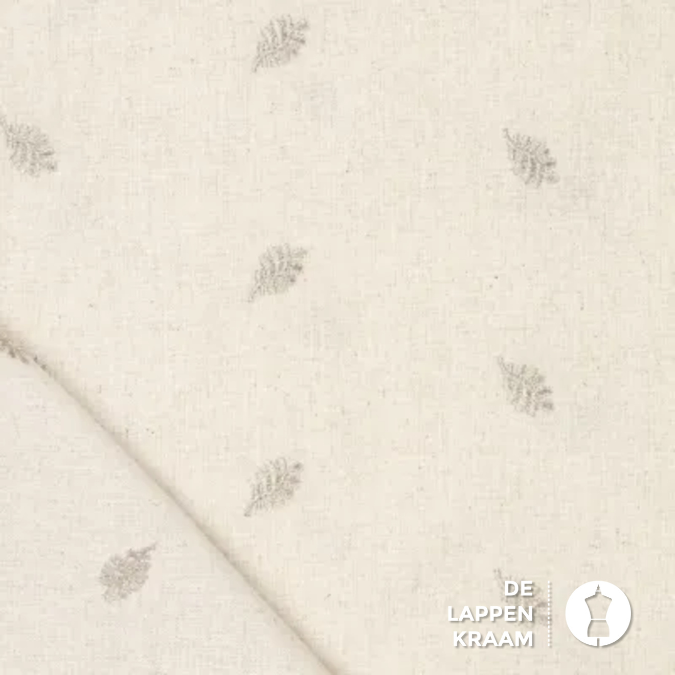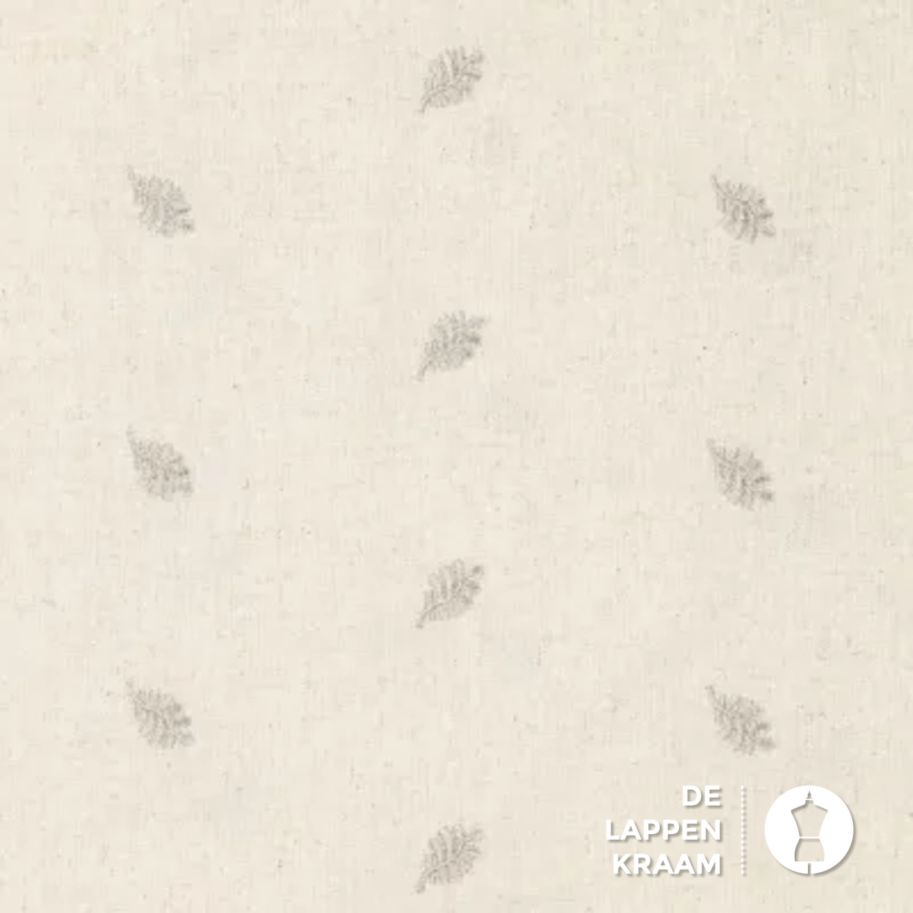 Geborduurde Linnenmix stof naturel met blaadjes