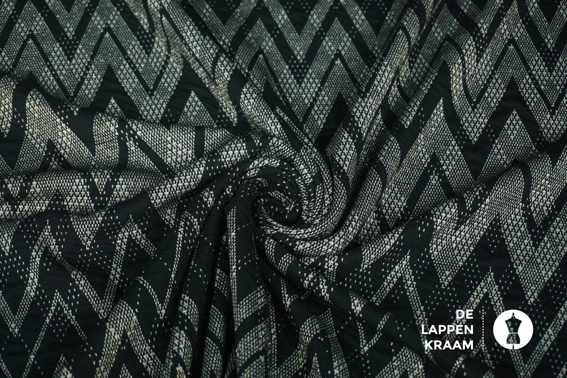 SALE Gebreide stof met zigzagmotief zwart-goud