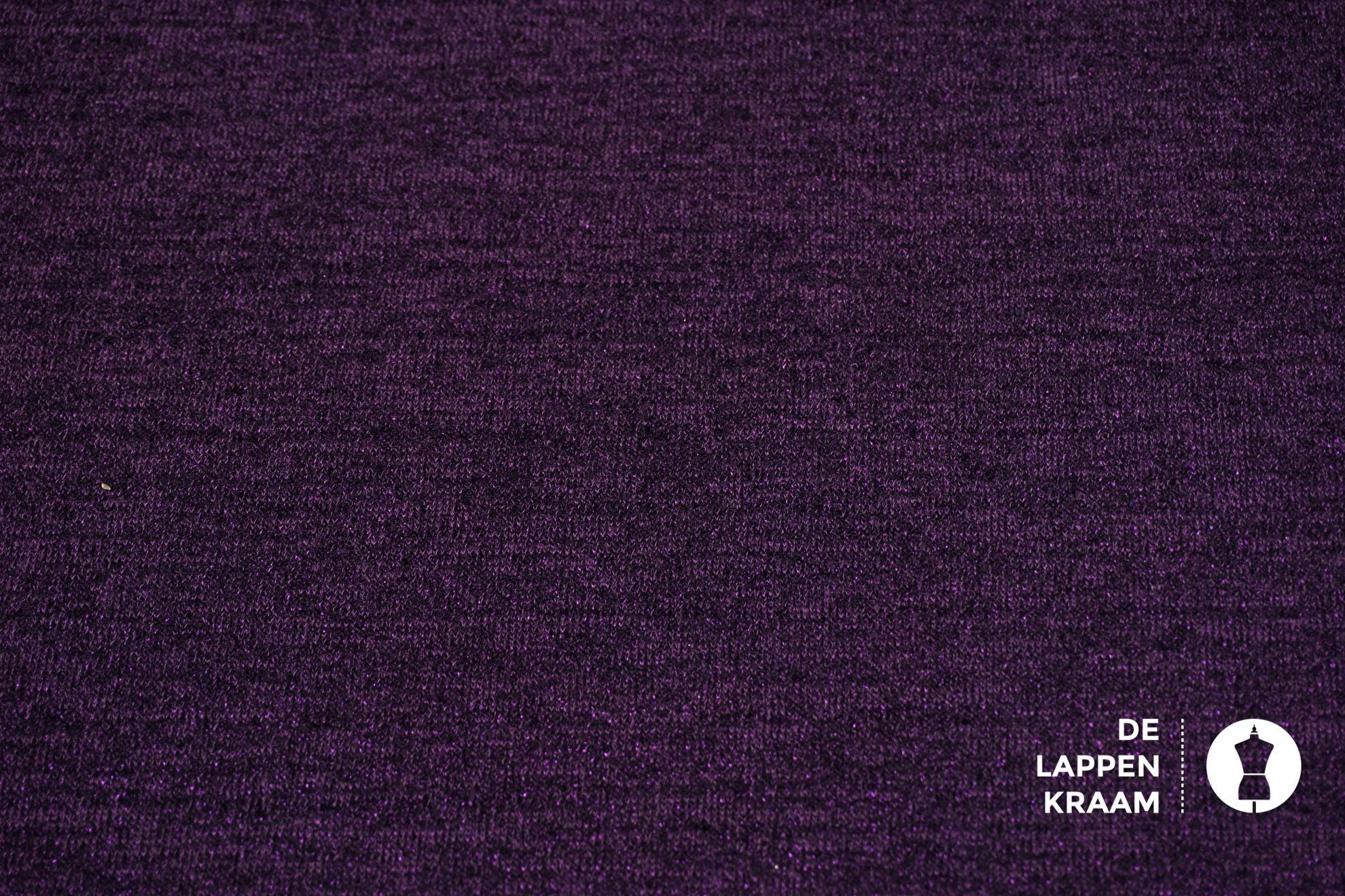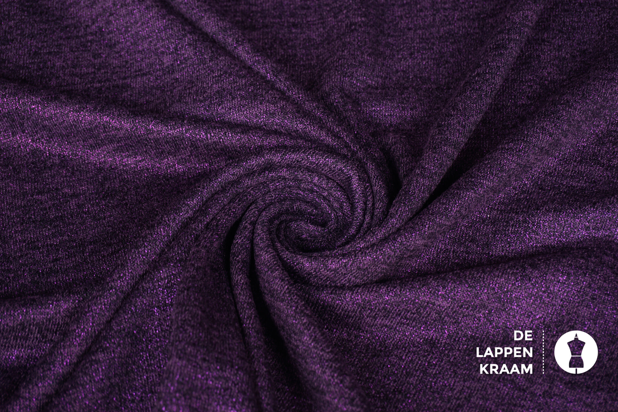 Heerlijk rekbare gebreide stof in paars. Door de hele stof heen zijn glimmende draden meegebreid, waardoor de stof mooi glittert... Lees meer