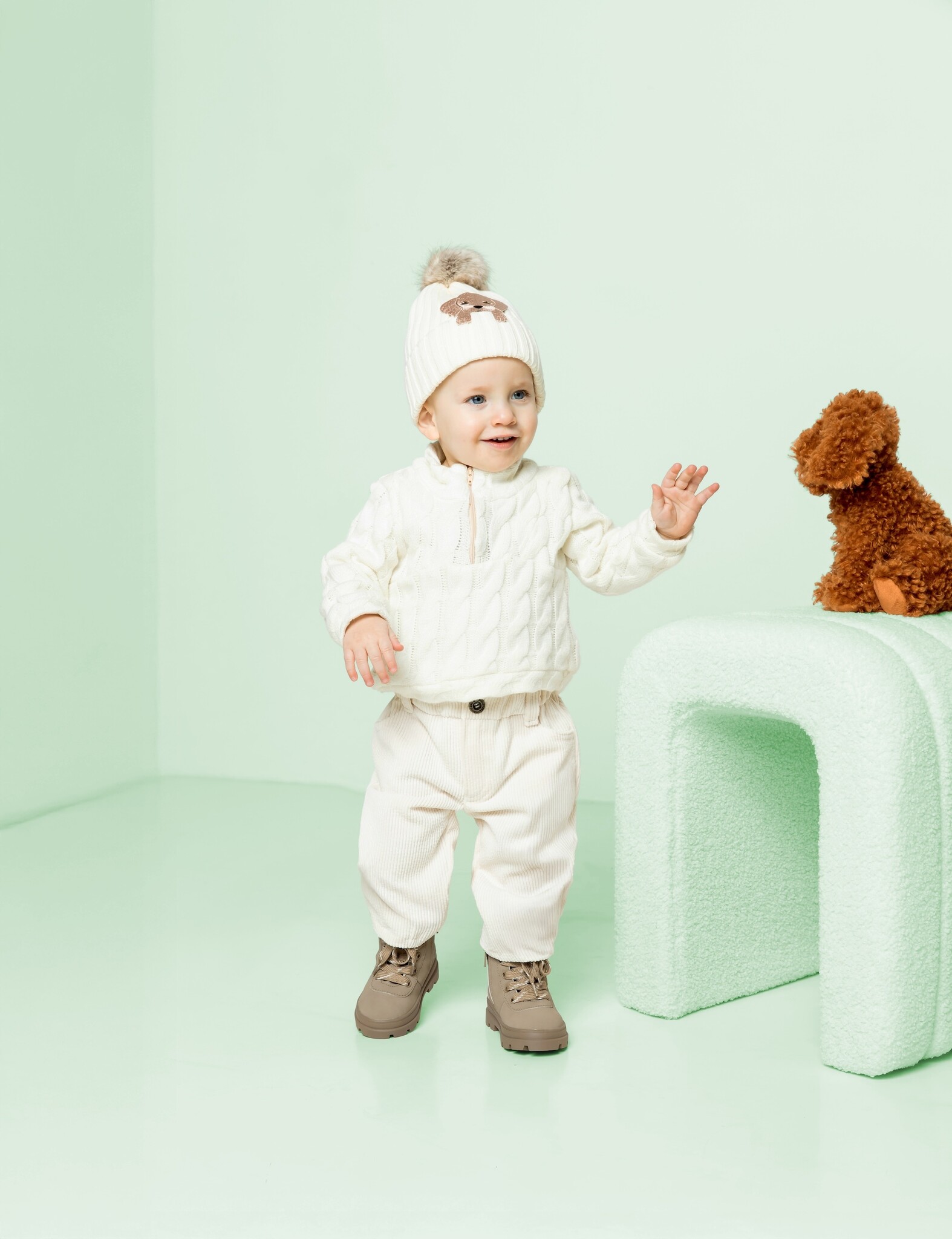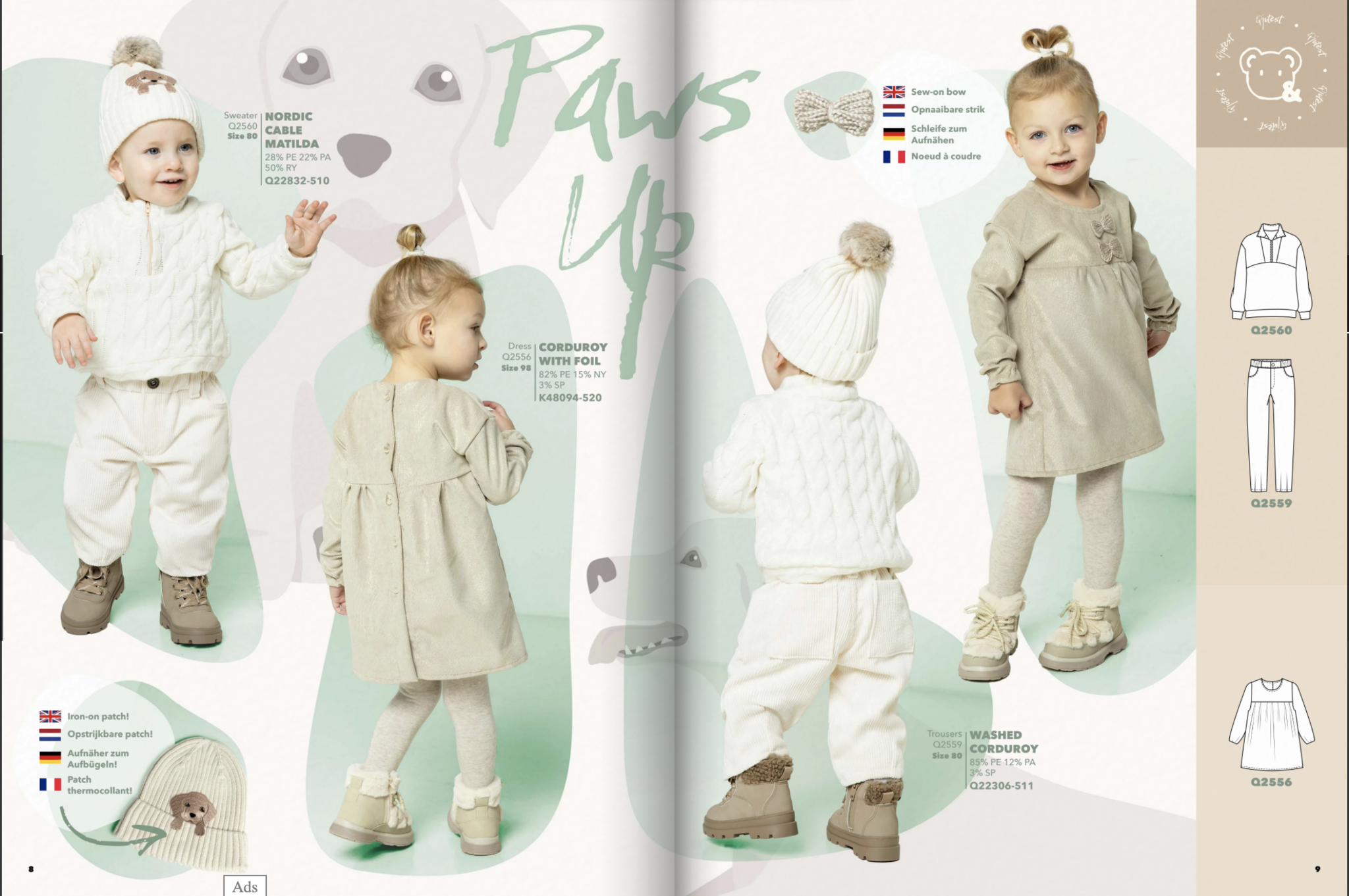 Deze stof is in de Qjutie & the Qjutest #2 gebruikt voor trui Q2560, in combinatie met een schattige broek van Ribfluweel roomwit.