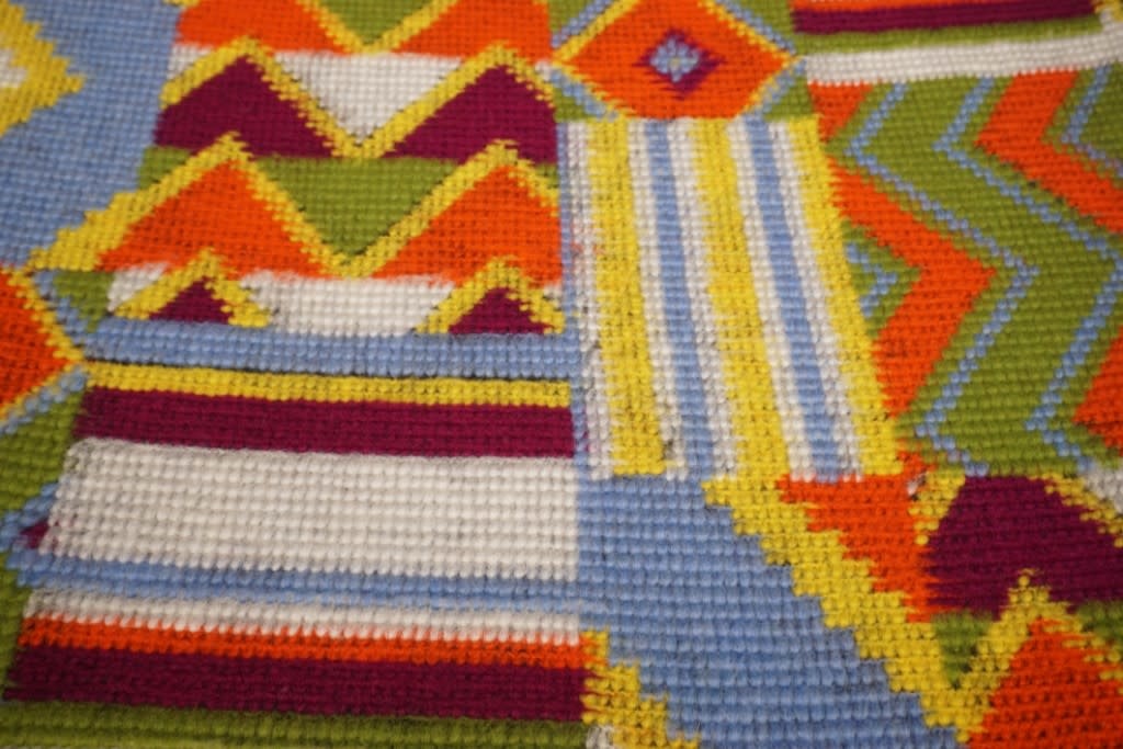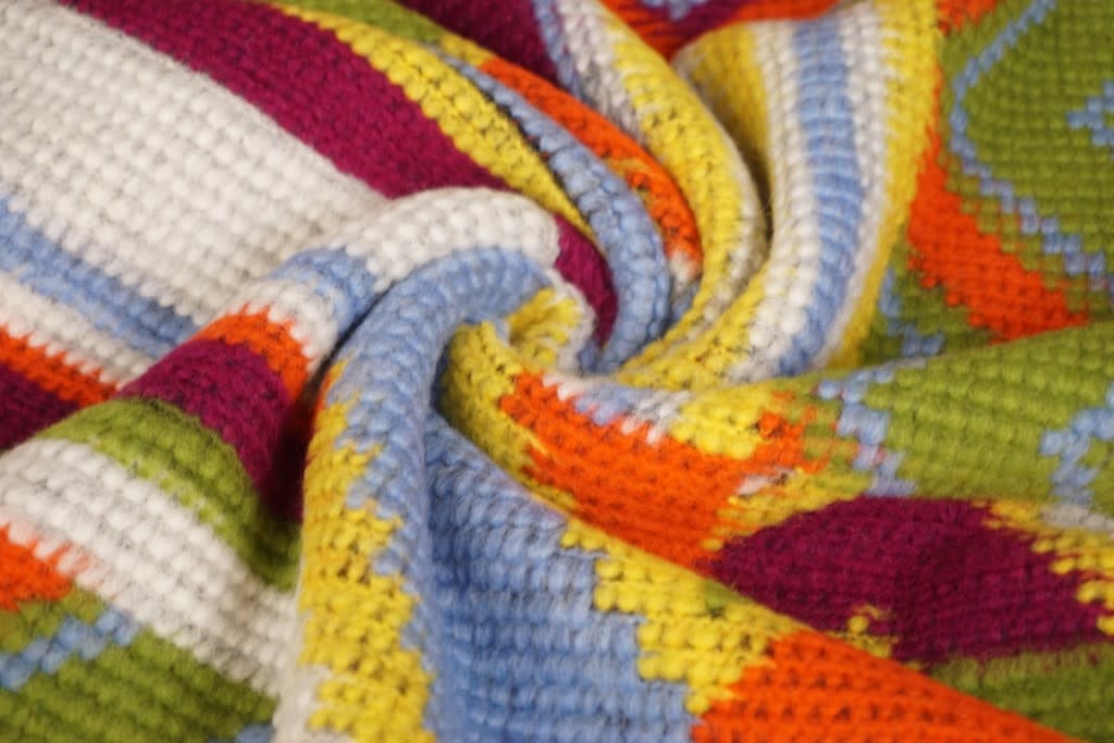 Ken je de smyrna nog van vroeger? Deze gebreide stof heeft er veel van weg maar is sneller "geknoopt". Het patroon is verdeeld in diverse vlakken en vormen in kleuren als oranje, geel, blauw, groen, wit en paars.... Lees meer