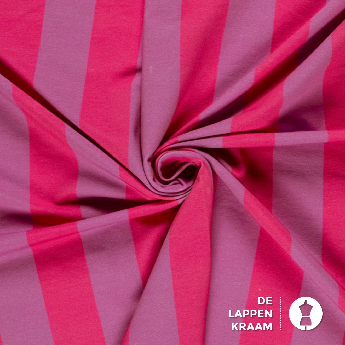 Wij waren op slag verliefd op deze geweldige french terry! Over de lengte van de stof lopen strepen van 5,5cm breed in roze en lila. De achterkant van de stof heeft de kenmerkende lusjes. Super tof voor zowel kinderen als volwassenen.... Lees meer