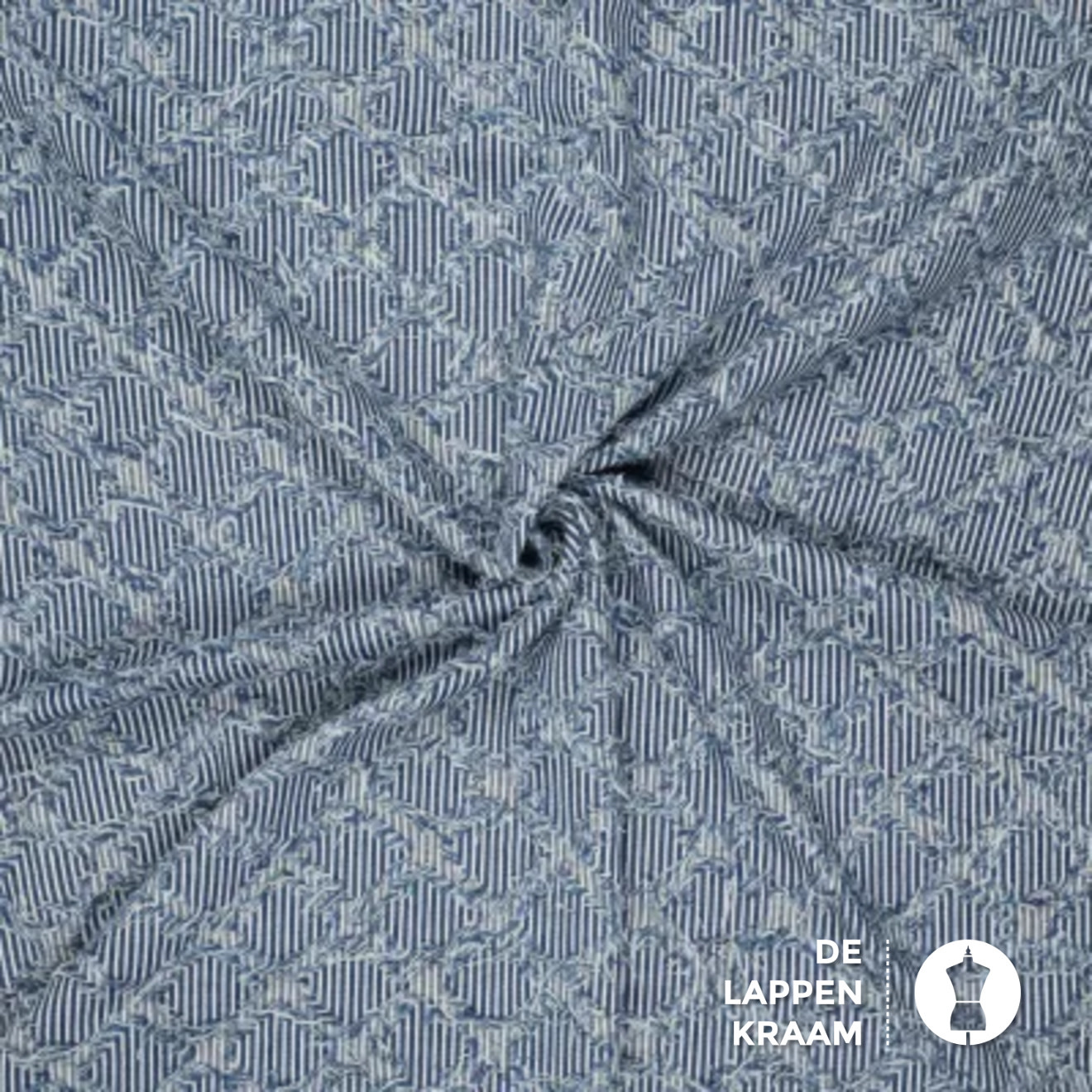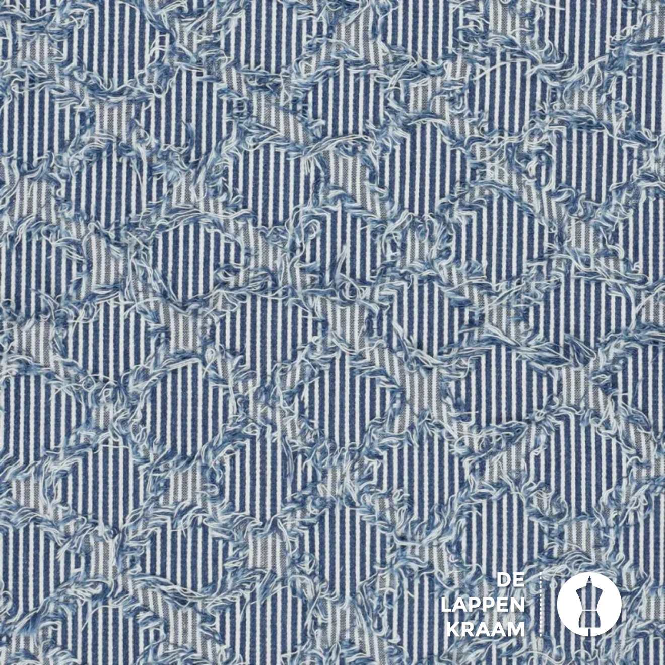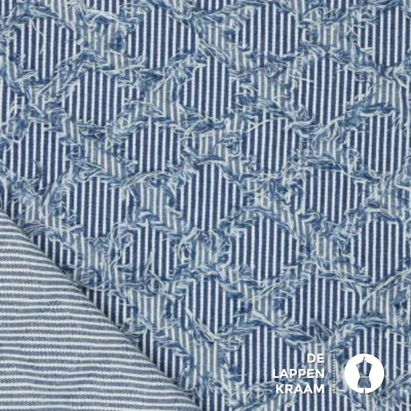 Gestreepte jeans stof met rafels in ruitvorm