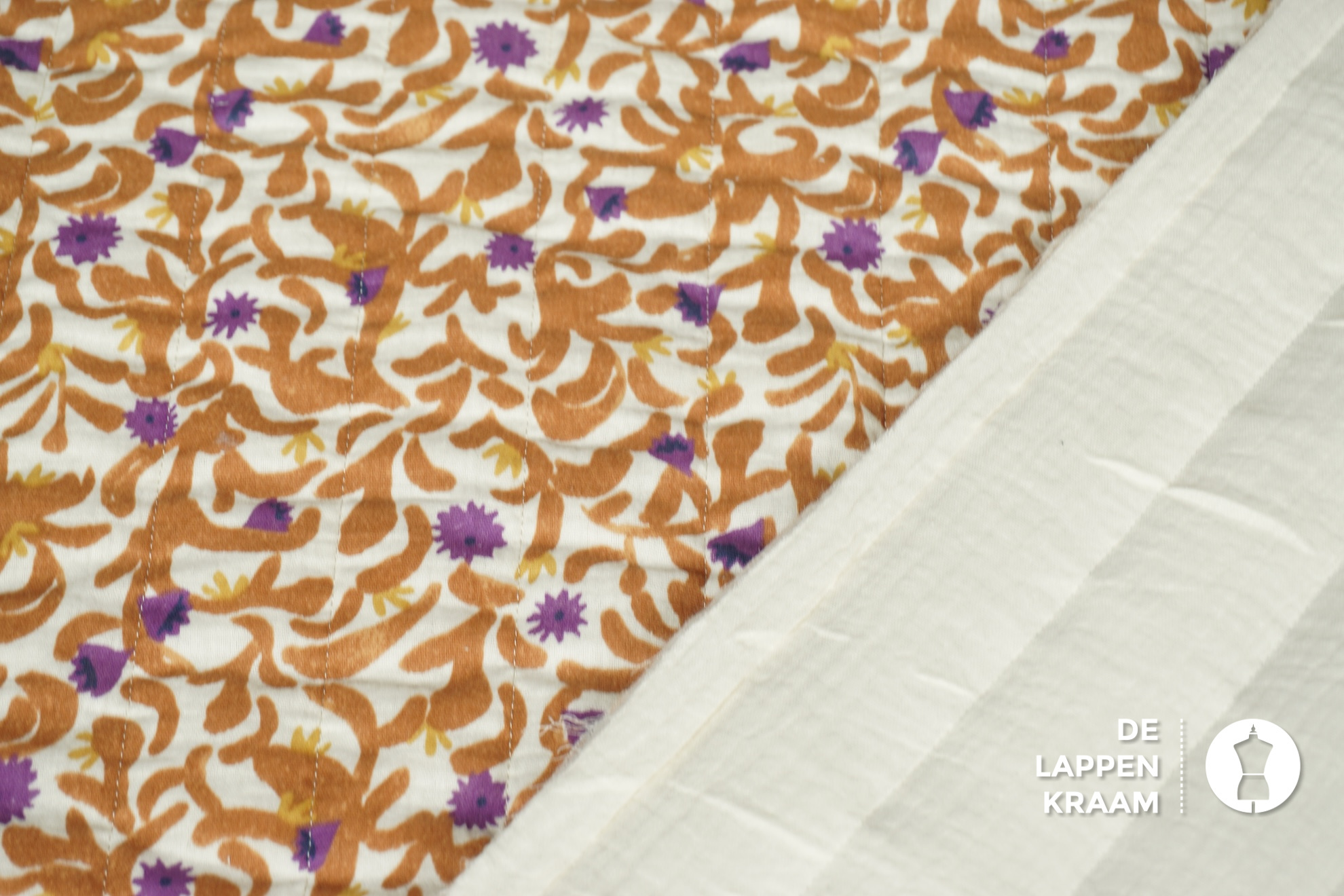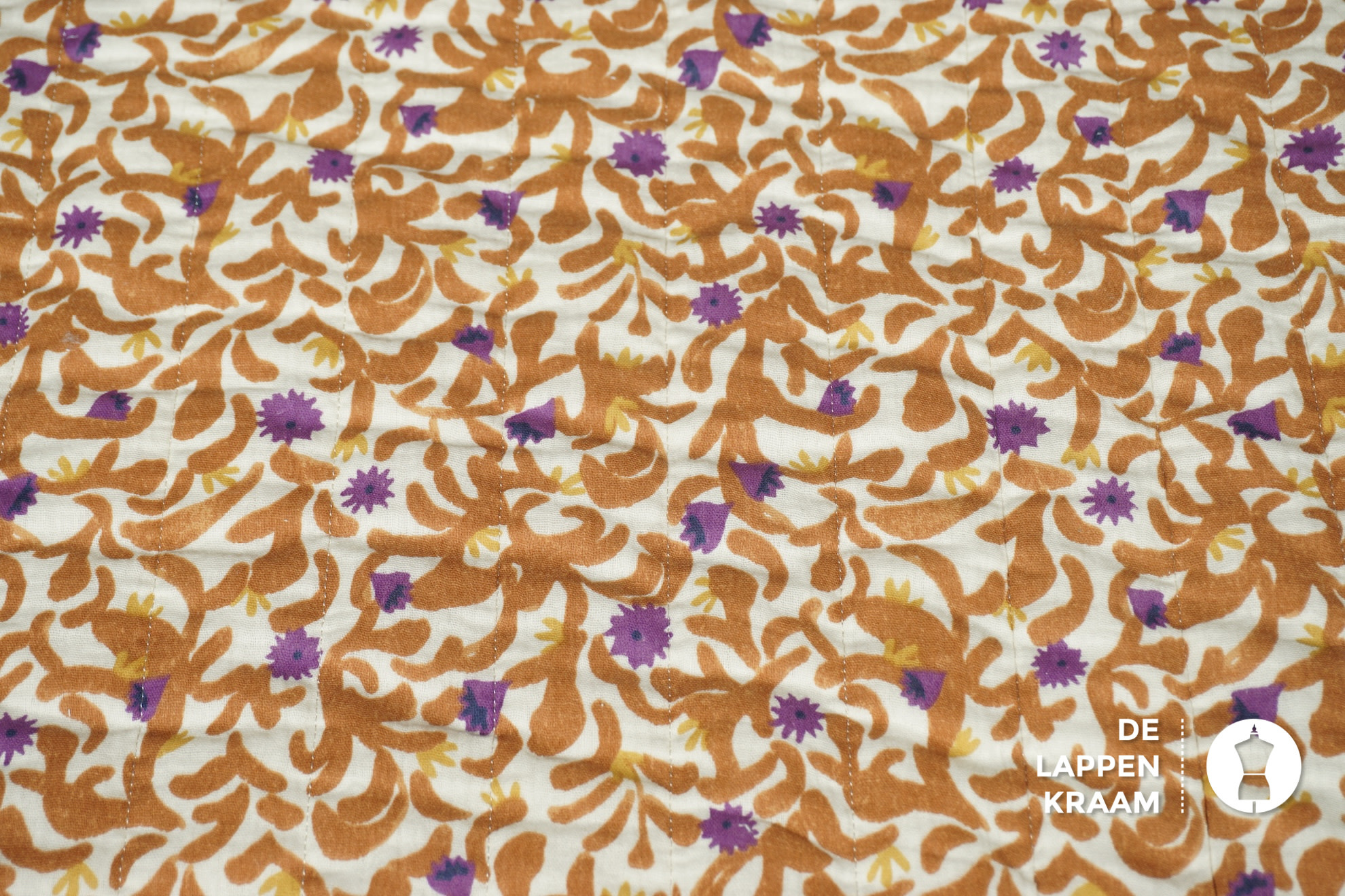 Gewatteerd en gestepte stof met fantasieprint in bruin en paars