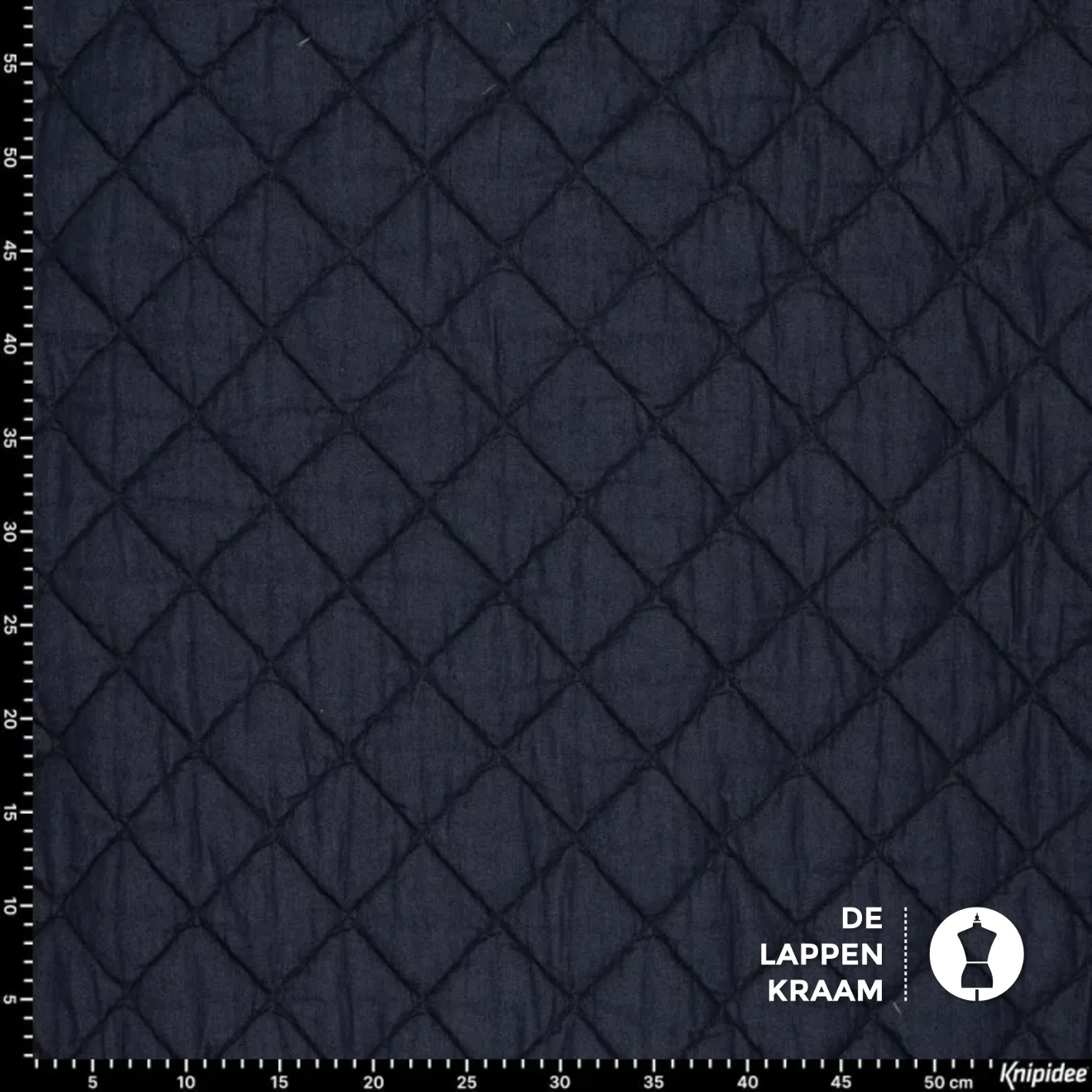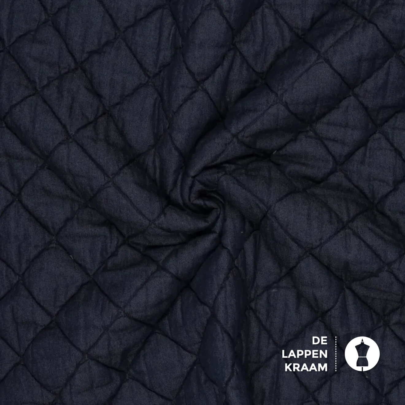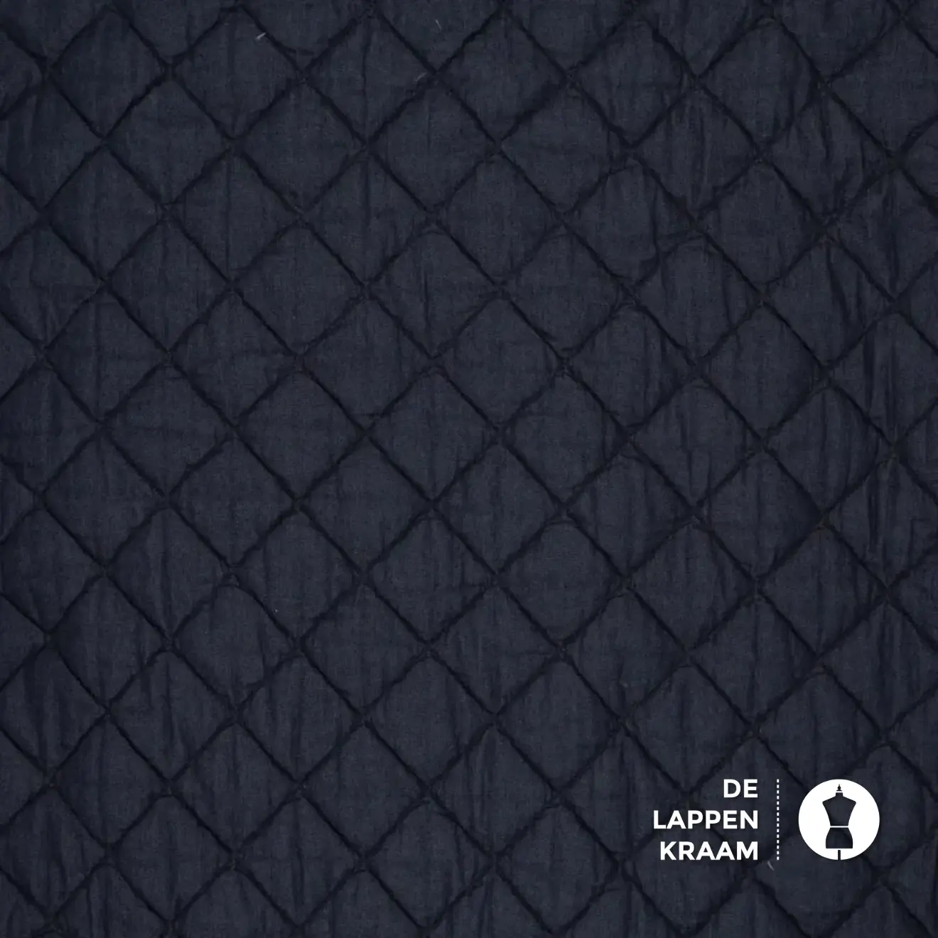 Gewatteerde stof, waarbij de buitenste laag bestaat uit een denim en de binnenste laag is een voeringstof van katoen met polyester. De ruit is 6,5 x 6,5 cm... Lees meer