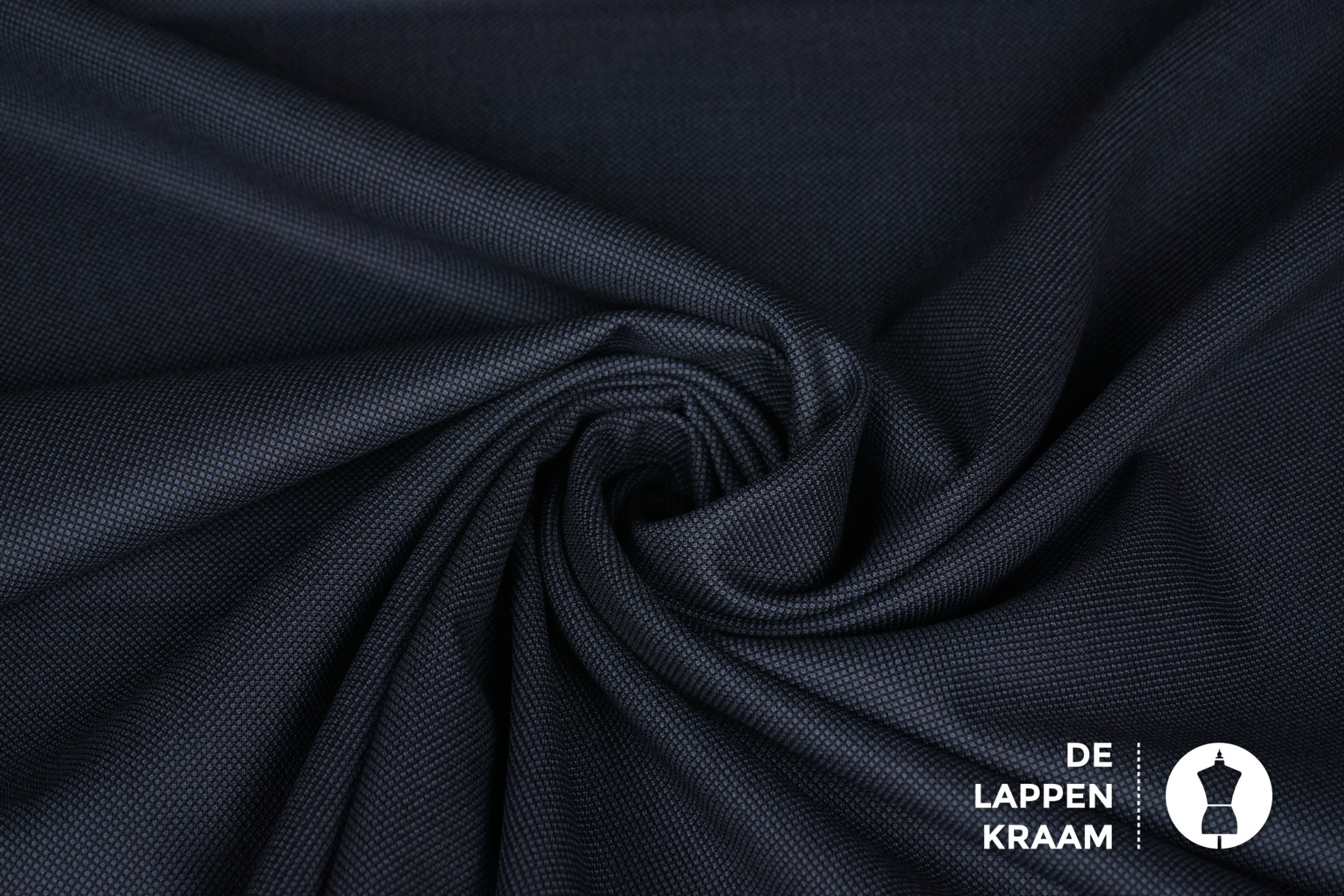 Geweven stof in donkerblauw met een iets lichtere blauwe draad, waardoor er een klein patroontje in de stof zit. Prachtig voor bijvoorbeeld een broek, jurk, rok of blouse.... Lees meer