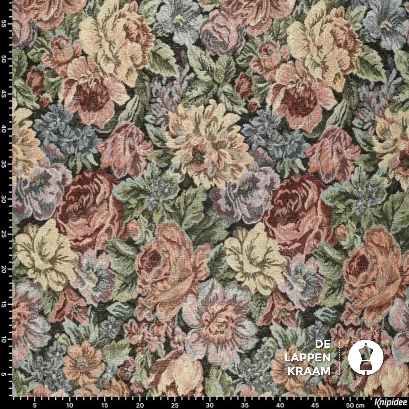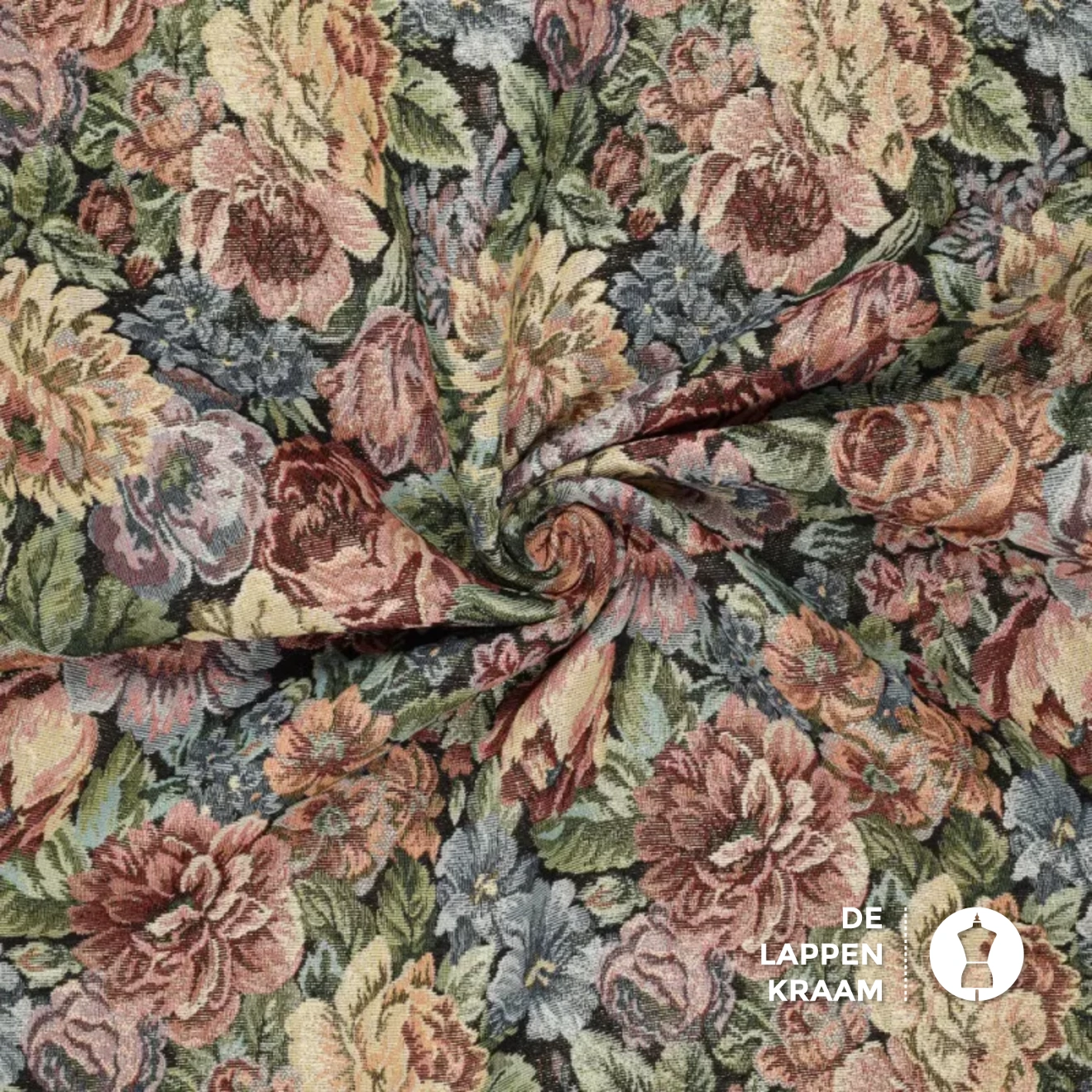 Prachtige geweven gobelin in een prachtige bloemenprint. Als toffe extra zijn hierbij gouden lurexdraden meegeweven wat de stof laat glitteren. Super hip voor bijvoorbeeld een bomberjack, maar ook voor bijvoorbeeld jassen en tassen.... Lees meer