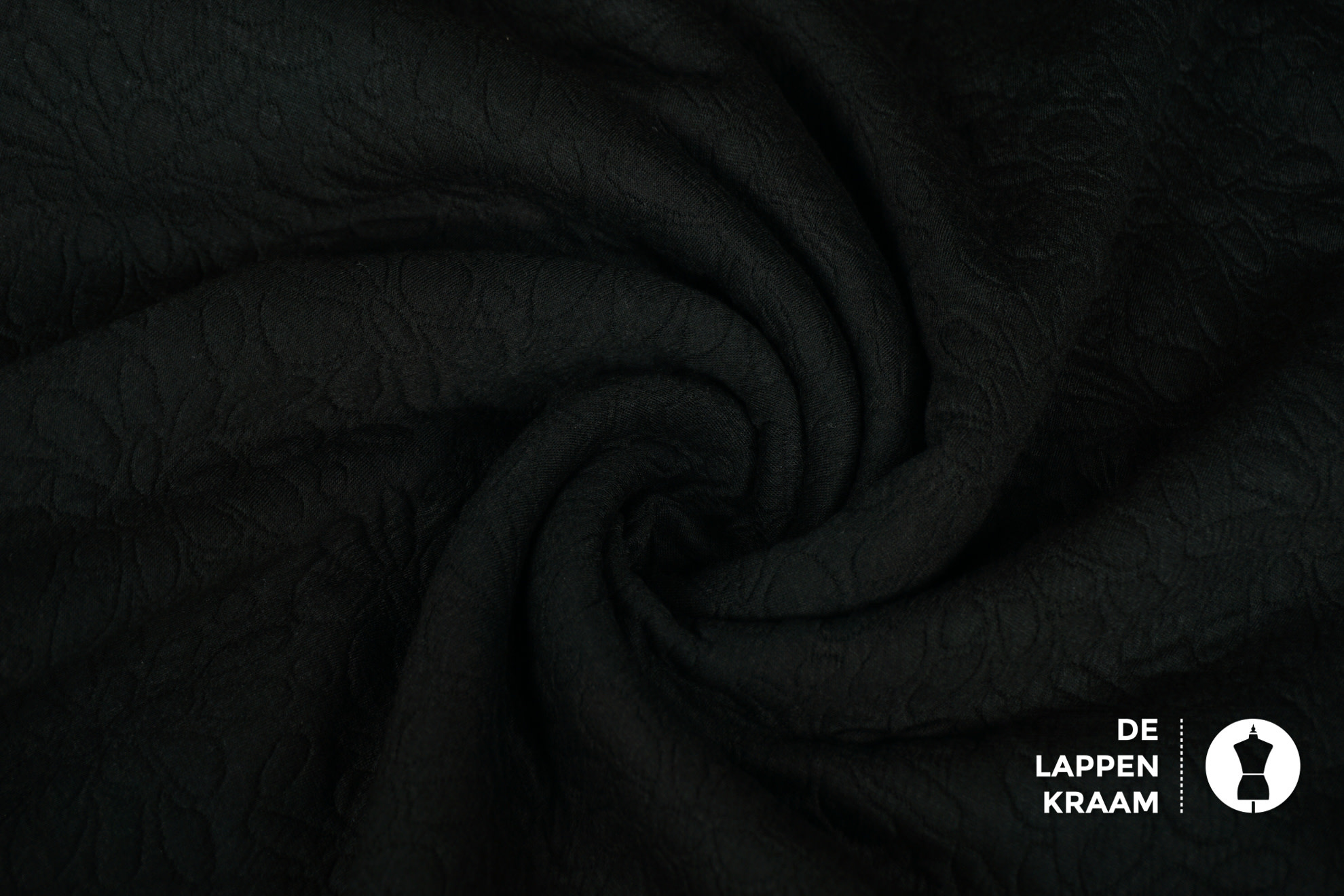De stof heeft 3 zwarte lagen stof en is doorgestikt met zwart garen in een bloemmotief. Doordat de middelste stof wat dikker is geeft het doorstikken een leuk 3D-effect. Veel stretch! leuk voor een sweater(jurk)... Lees meer