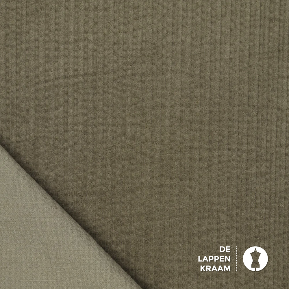De stof is geschikt voor trui, vest, bodywarmer of ongevoerd jasje.